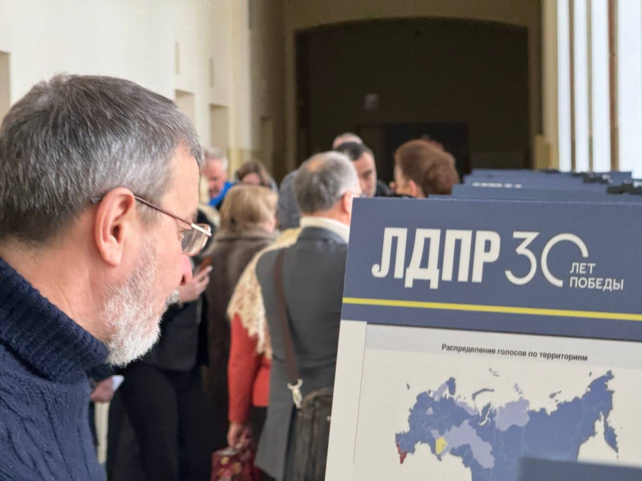 Главным событием этого дня, 12 декабря, для партии стало открытие выставки «30 лет Победы ЛДПР». Экспозиция посвящена триумфальной победе на выборах в Государственную Думу I созыва в 1993 году