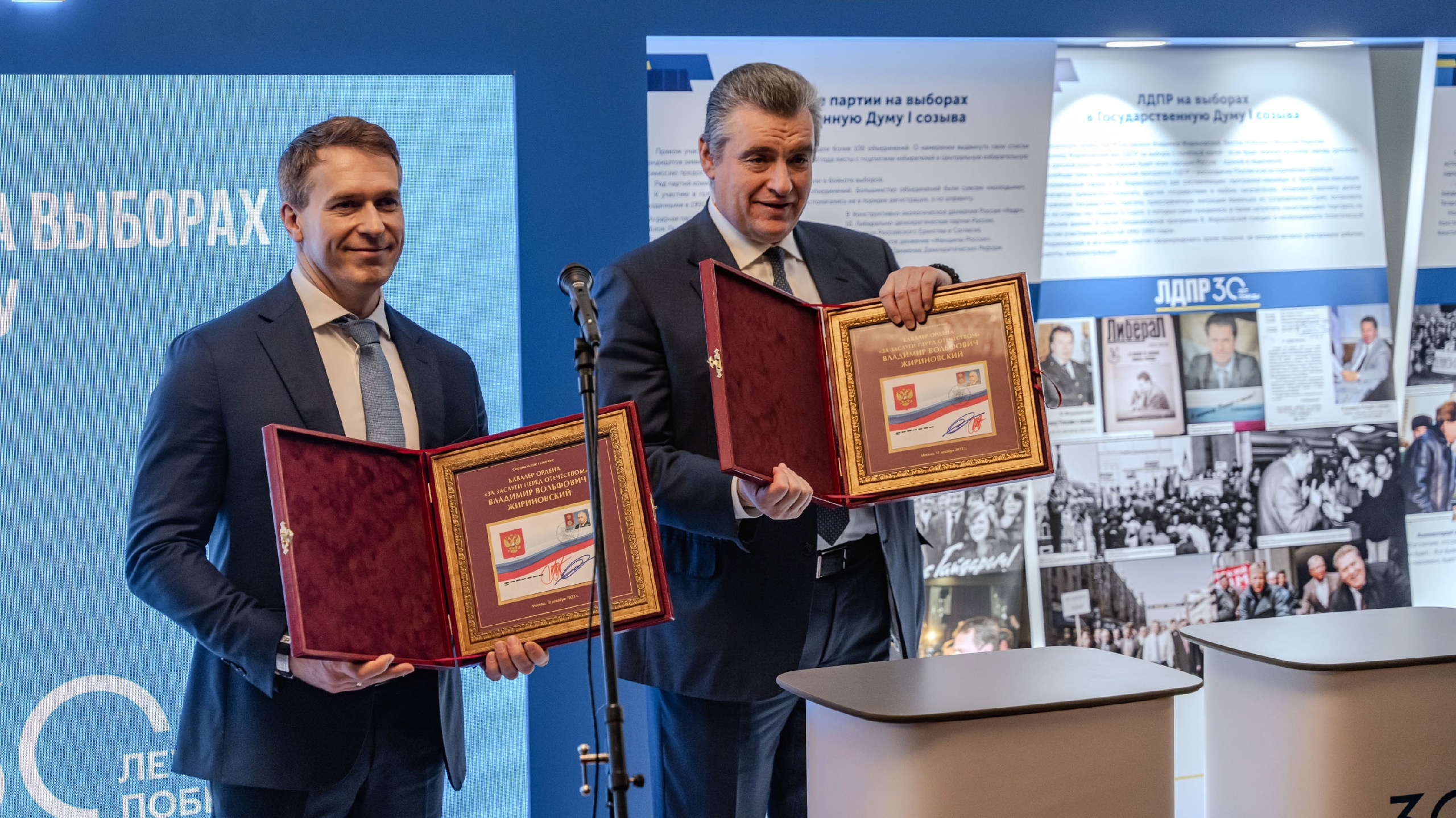 В церемонии приняли участие Председатель ЛДПР Леонид Слуцкий и генеральный директор «Почты России» Михаил Волков
