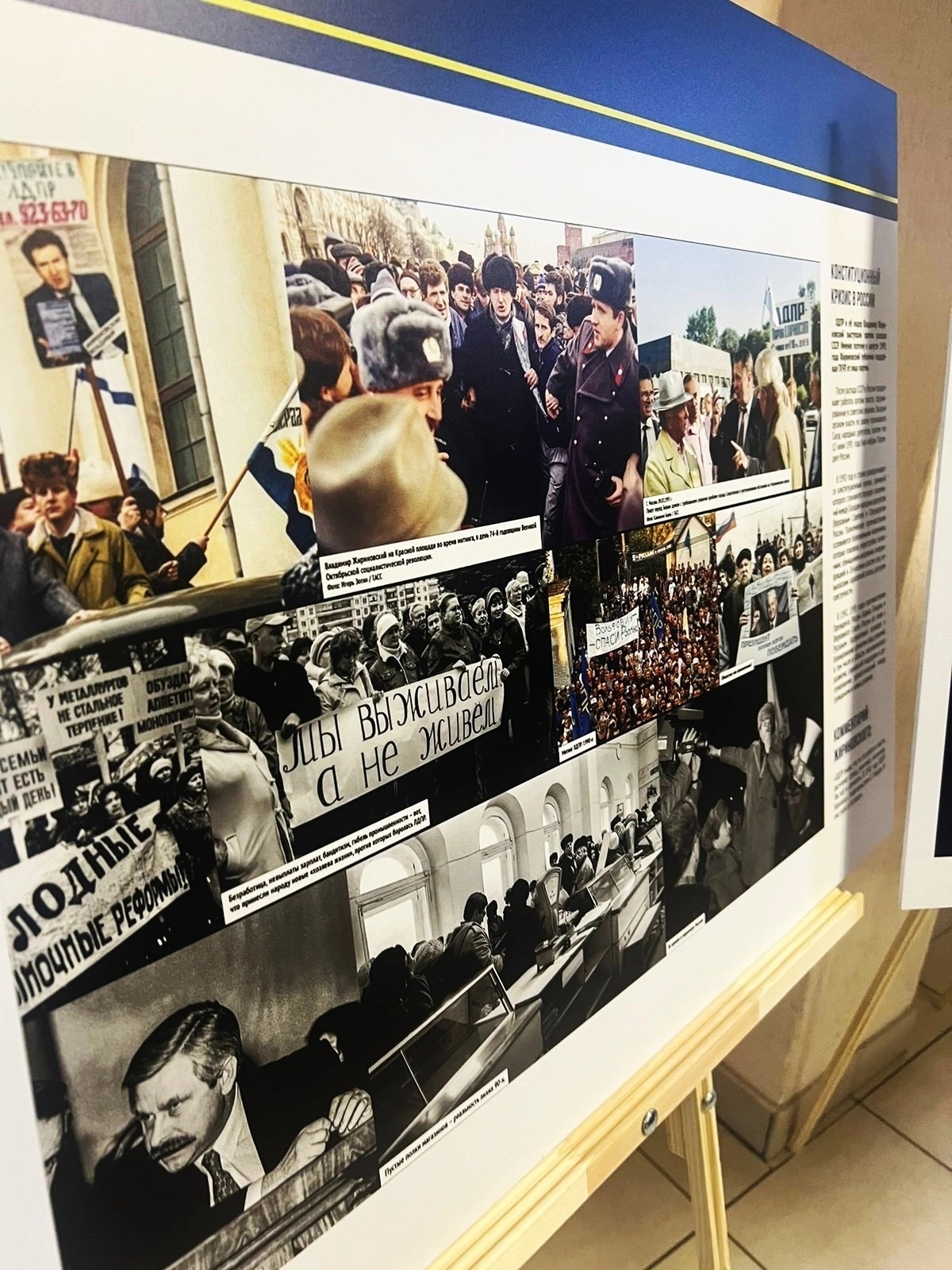 На выставке отражены важнейшие события из истории ЛДПР. Одним из них является победа на выборах в Госдуму в 1993-ем году, когда партия получила поддержку более 12 миллионов граждан (22,92%).