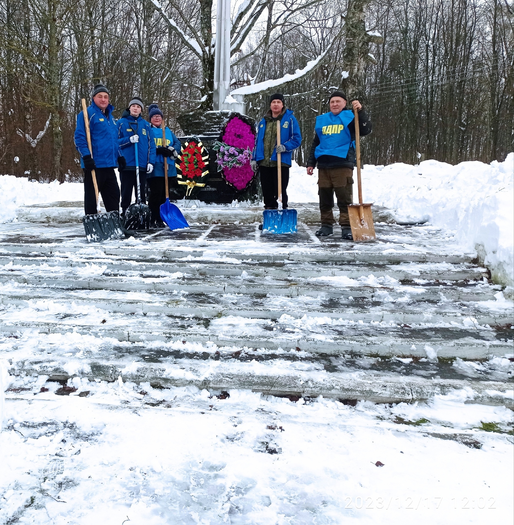 Снежные десантники ЛДПР очистили от снега мемориал "Штык и знамя" в Монастырщине