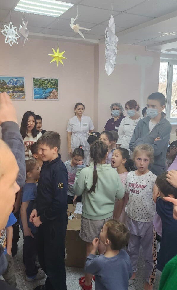 Депутат Сахалинской областной Думы от ЛДПР, Виталий Баранов, вместе с активистами посетил детское отделение Противотуберкулезного диспансера, чтобы поздравить маленьких пациентов с наступающими праздниками
