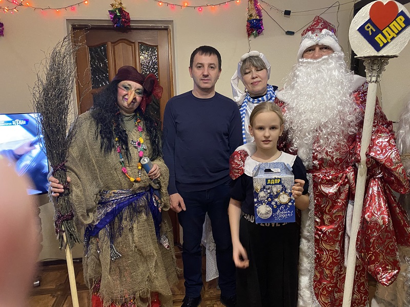Наши партийные сказочные персонажи поздравили семьи с наступающим Новым 2024 годом, вручили детям сладкие подарки от ЛДПР, а в ответ ребята подарили Дедушке Морозу и компании свои рисунки на новогоднюю тематику, рассказали стихи, исполнили песни.