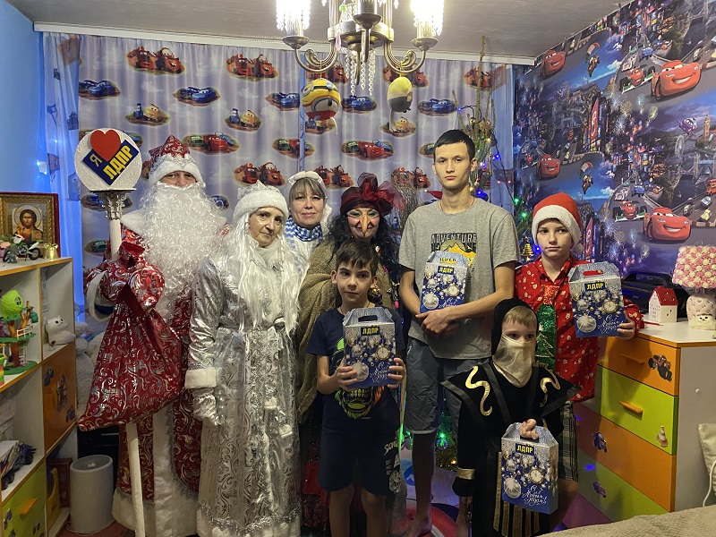 Предновогодние поздравления "Новый год для всех и для каждого!" - это традиция Нижневартовского местного отделения ЛДПР. Сказочные персонажи: Баба Яга, Зайка, Снегурочка и Дед Мороз отправились в гости к многодетным, малообеспеченным семьям, семьям участников СВО.
