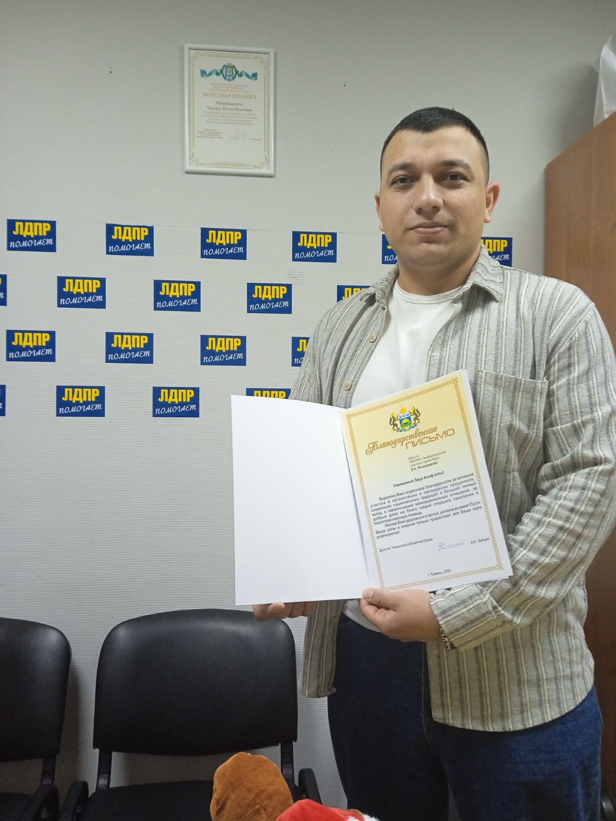 "За чашкой чая много теплых слов благодарности было сказано в адрес наших коллег и партии. Также были вручены благодарственные письма сотрудникам организации "Почта России" и руководителям Азербайджанской диаспоры. Благодарственное письмо от Председателя Тюменской областной Думы было вручено нашему члену партии. Спасибо большое всем за работу! Впереди новые задачи и дела. Набирайтесь сил! Всем только самого лучшего в наступающем Новом 2024 году!" - поздравила активистов партии координатор местного отделения ЛДПР в Урае Елена Черевач.