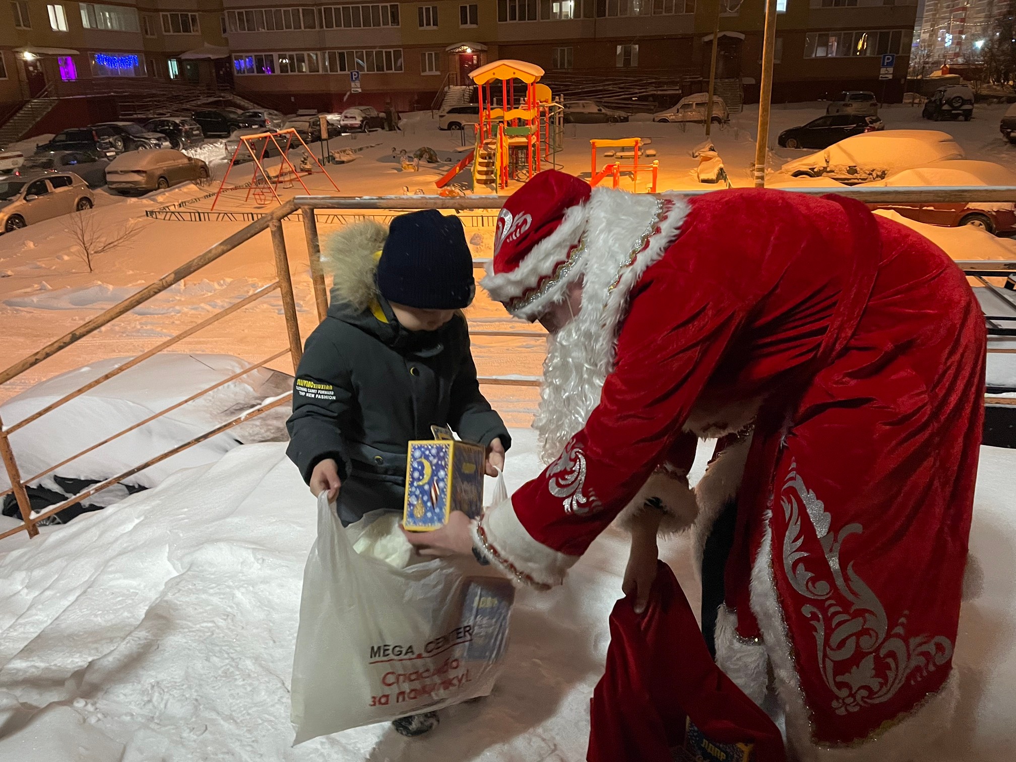В городе Лабытнанги Дед Мороз поздравляет детей с наступающим Новым годом, дарит подарки и передаёт теплые пожелания от ЛДПР