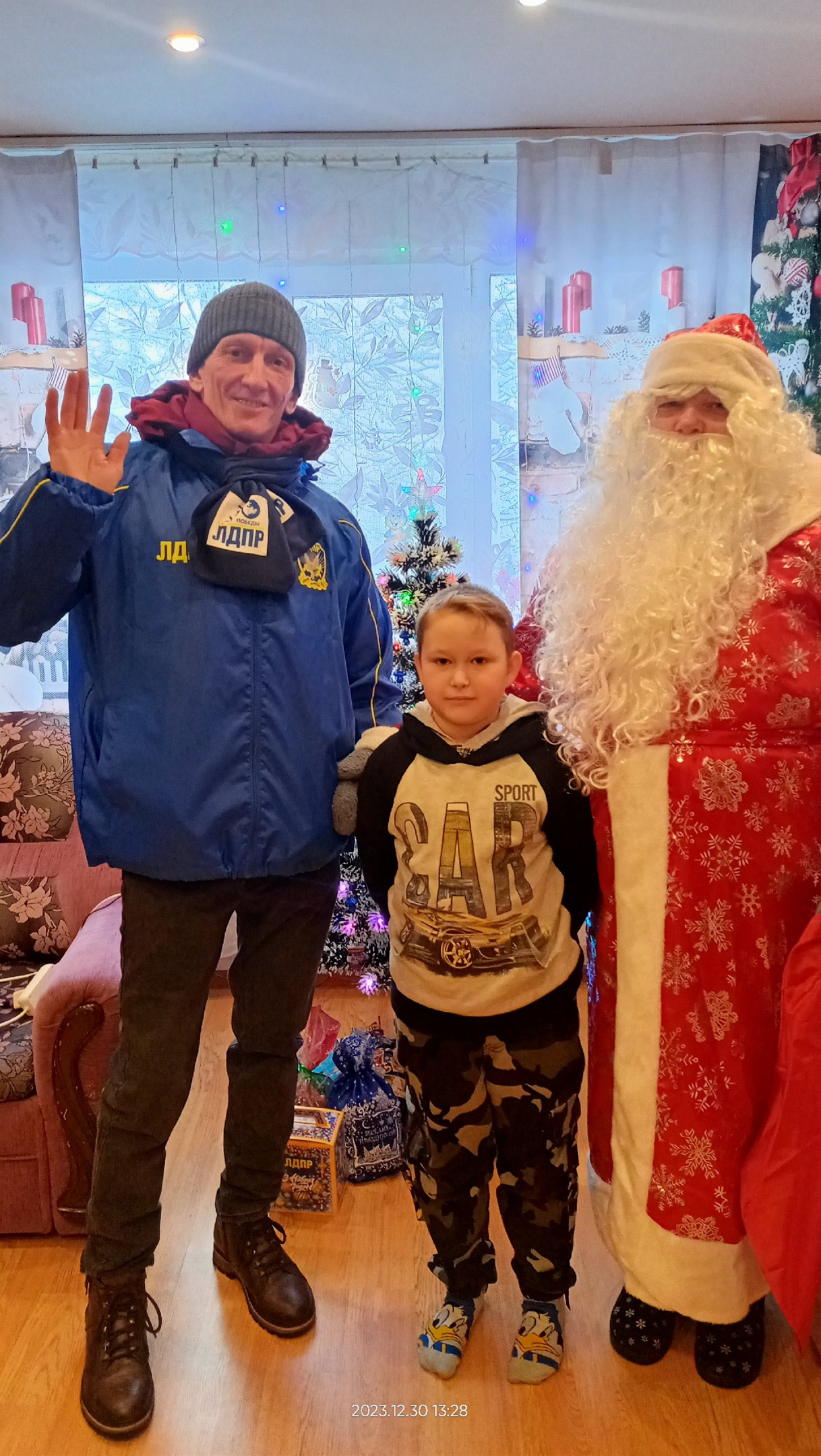 Дед Мороз и координатор ЛДПР из Прилузья Станислав Кузнецов в преддверии Нового года поздравили детей погибших военнослужащих и бойцов, находящихся сейчас на боевых позициях в зоне проведения СВО