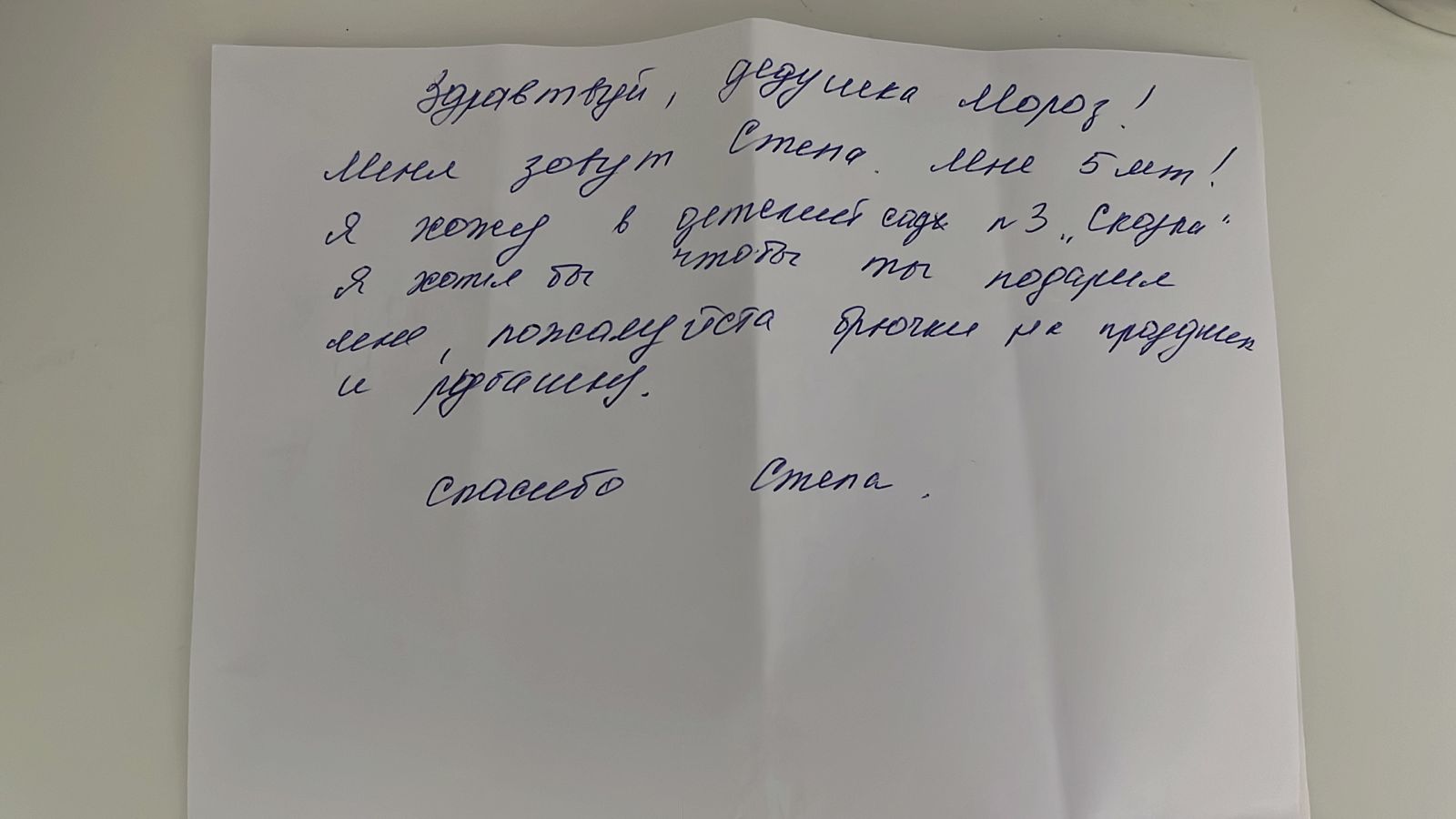 Кроме того, депутату написал пятилетний мальчик Степа, который попросил парадный костюм.