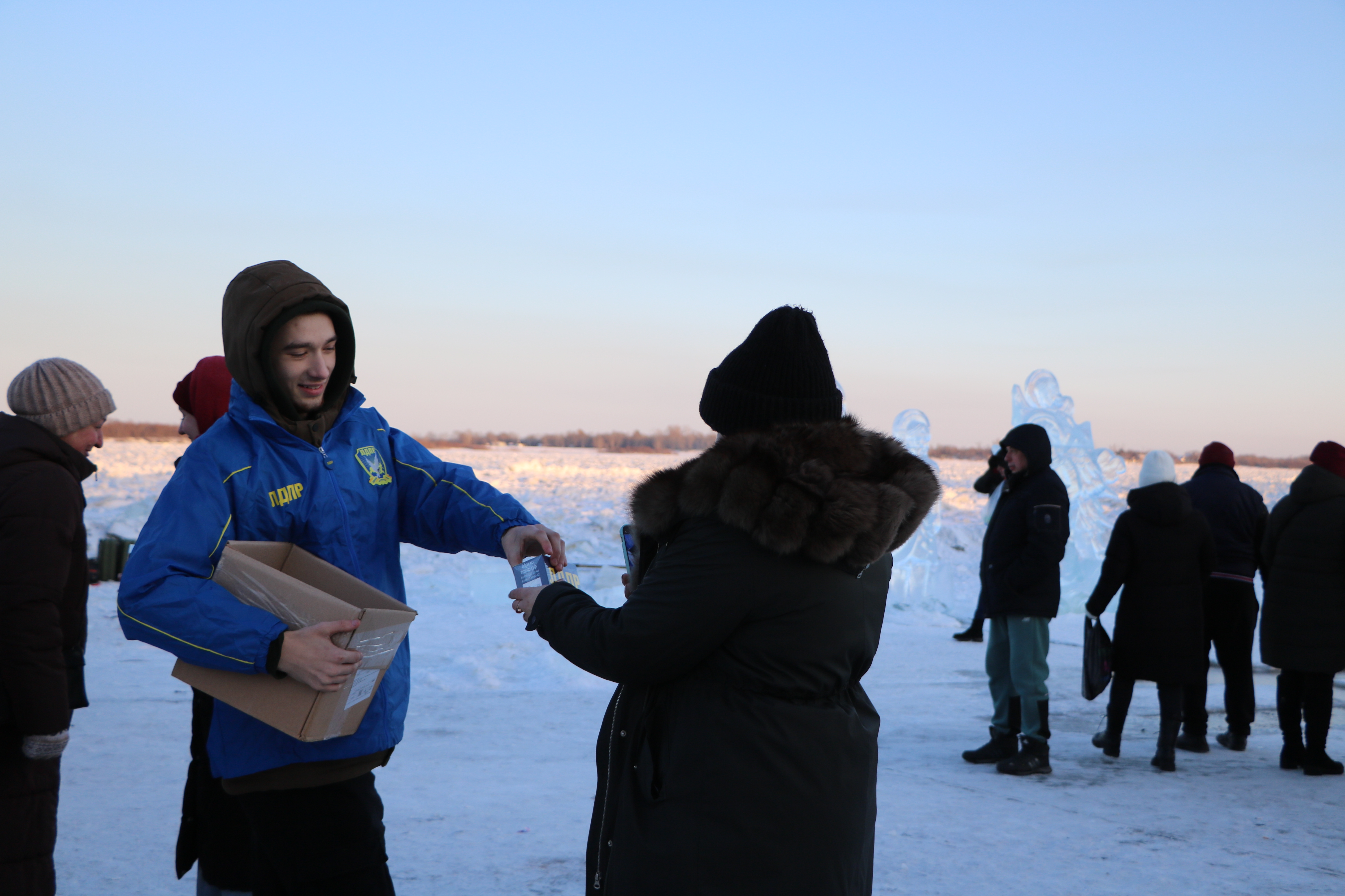 Активисты молодежной организации ЛДПР принесли тепло и заботу окунающимся возле купели, даря добрые пожелания в день Крещения Господне