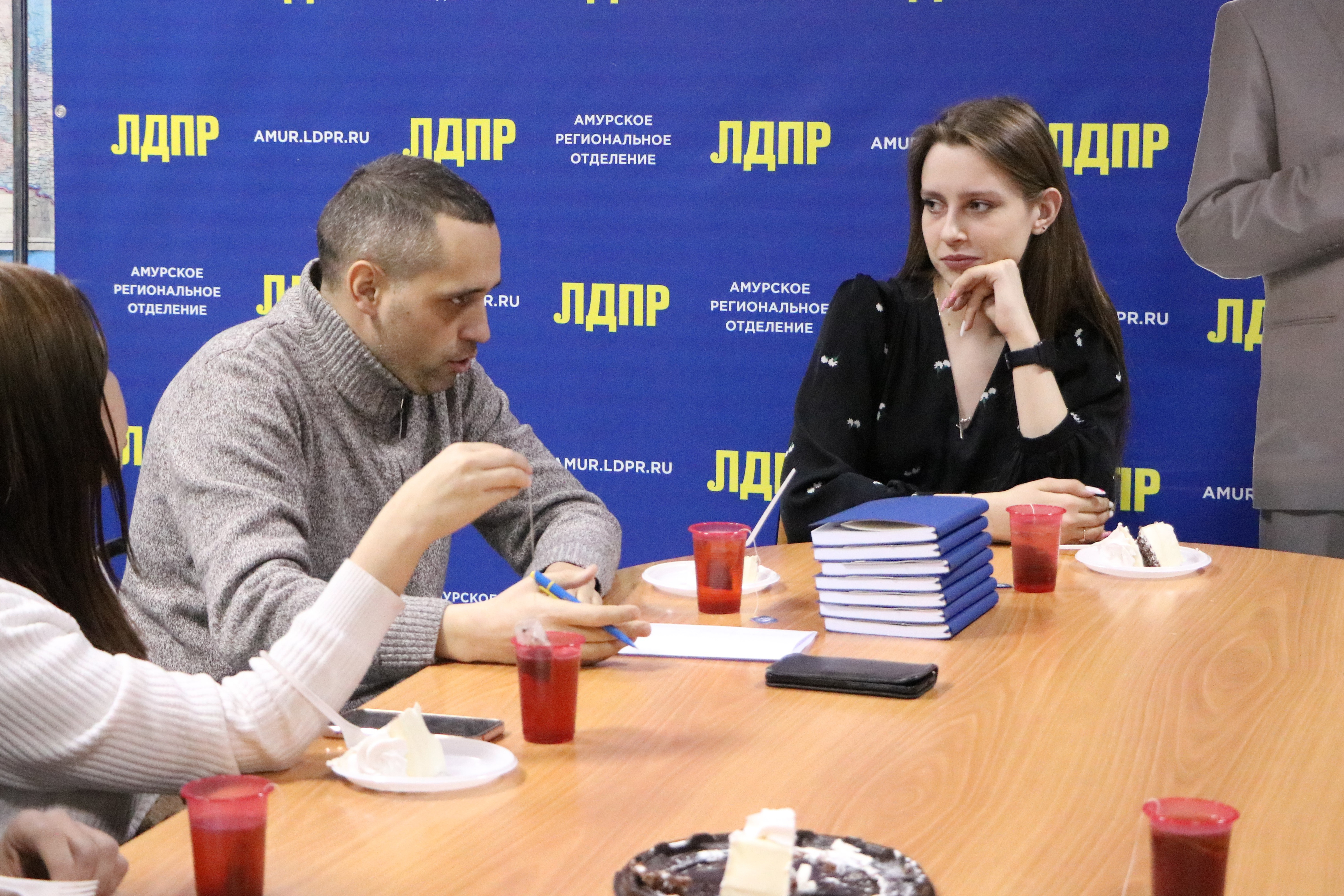 В честь Дня студента активисты молодежной организации ЛДПР в Амурской области собрались в дружественной обстановке, чтобы провести чаепитие, поделиться новостями, обсудить предстоящие задачи и подготовить план работы на ближайший месяц