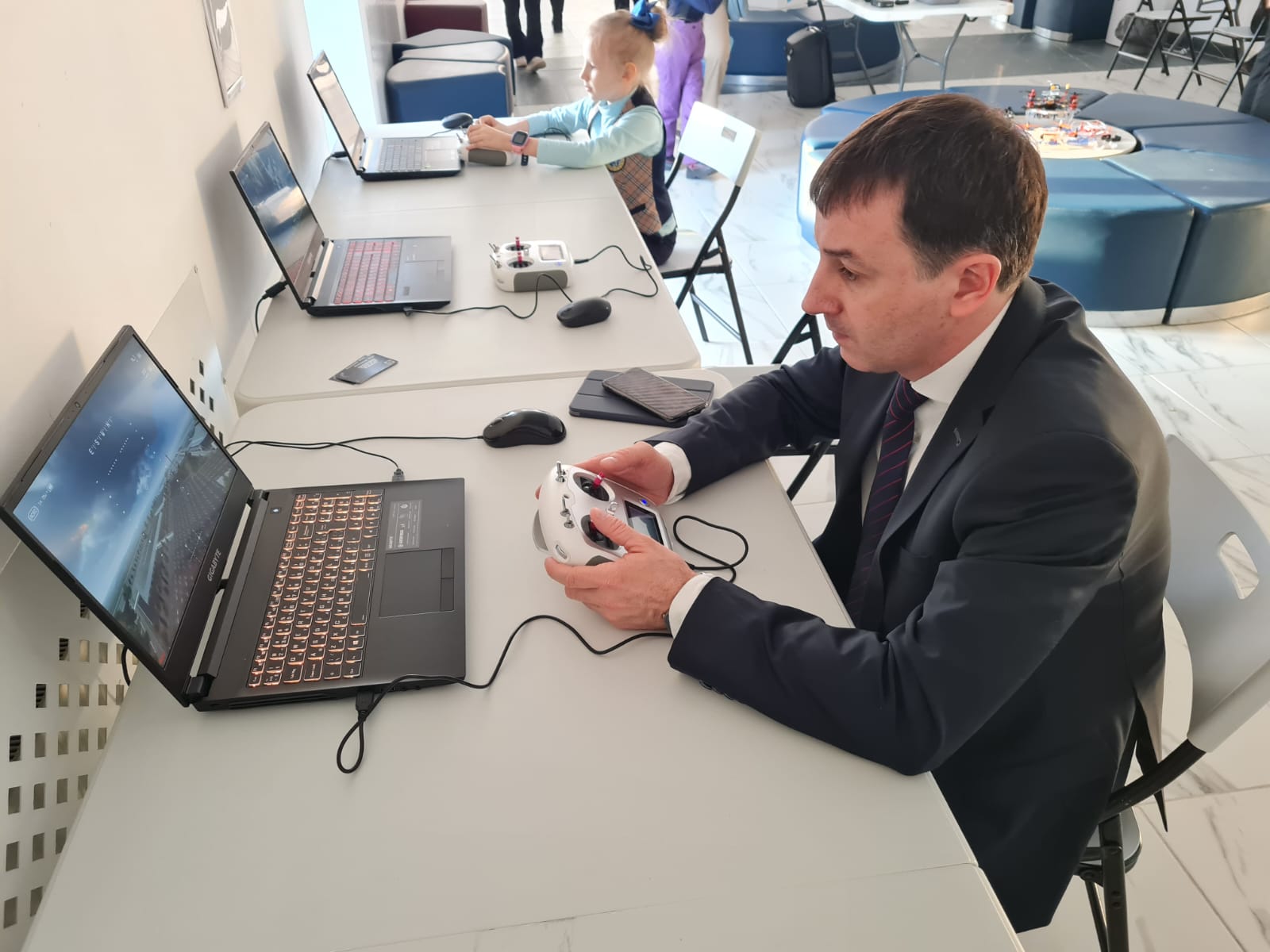 Руководитель избирательного штаба Ханты-Мансийского регионального отделения ЛДПР, депутат Думы города Ханты-Мансийска Евгений Данников попробовал управлять дронами за компьютером.