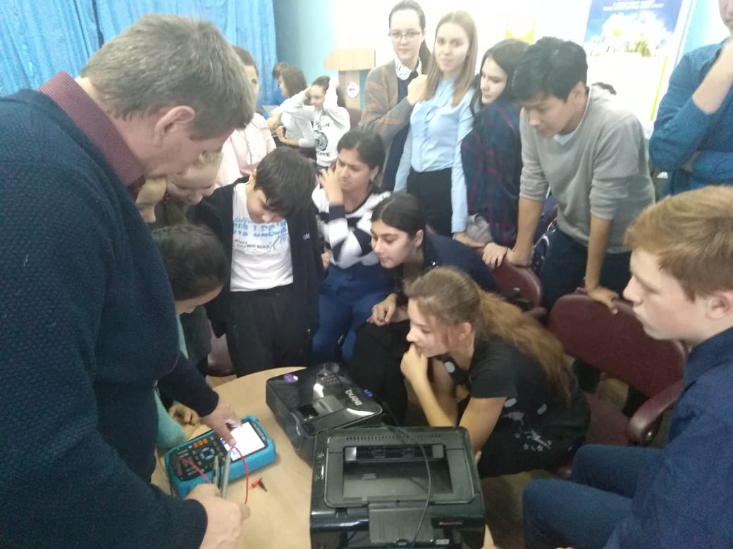 "Ребята интересуются специальностями авиадиспетчера и радиотехника. Рассказываю им и про целевые программы, по которым ученики могут обучаться, например, в Московском государственном университете гражданской авиации", - отмечает он.