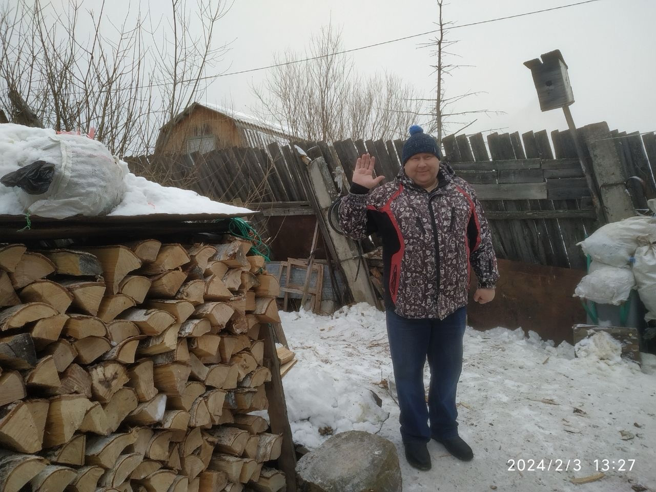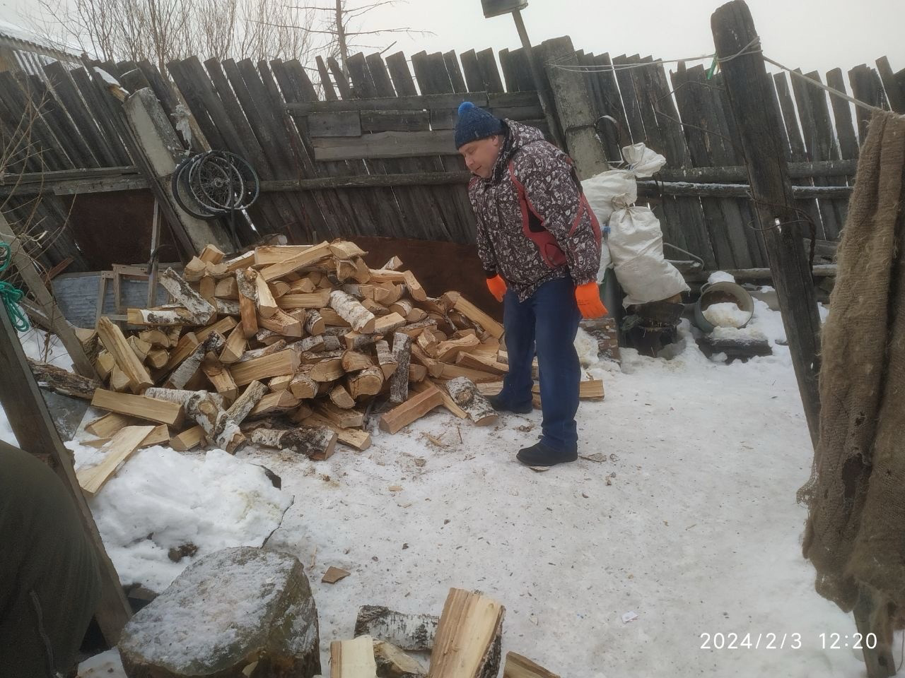 Бабушке нужно было сложить привезенные дрова в поленницу, но по понятным причинам, самостоятельно сделать это ей было трудно. На выручку пришли партийцы Александр и Екатерина Черновы. С самого утра они и дружно подзарядились на свежем воздухе, и человеку помогли.
