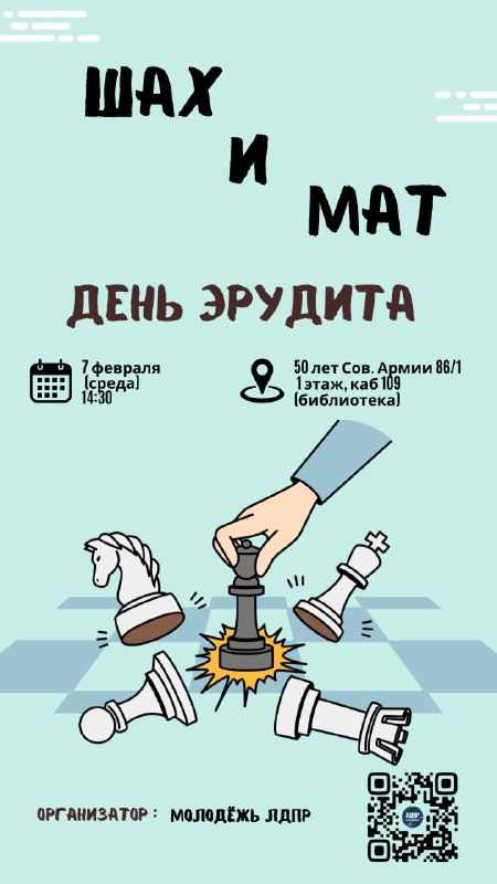 Ежегодно 5 февраля отмечают День эрудита. Молодёжь Якутского регионального отделения ЛДПР проводит турнир «Шах и Мат» посвящённый этому дню