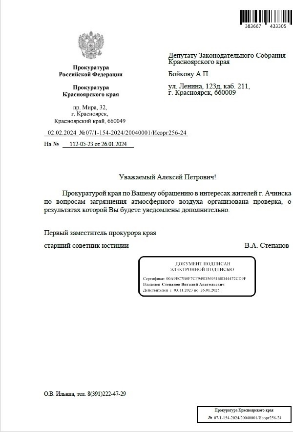 Парламентарий предложил присутствующему министру экологии принять к АГК все возможные публичные и непубличные меры воздействия, с чем тот согласился. К проверке комбината уже подключилась краевая прокуратура, куда Алексей Бойков ранее направил запрос по просьбам ачинцев. Нужно сделать всё возможное, чтобы подобное экологическое бедствие больше не повторилось, а виновный ответил, и не только рублём, убежден депутат ЛДПР.