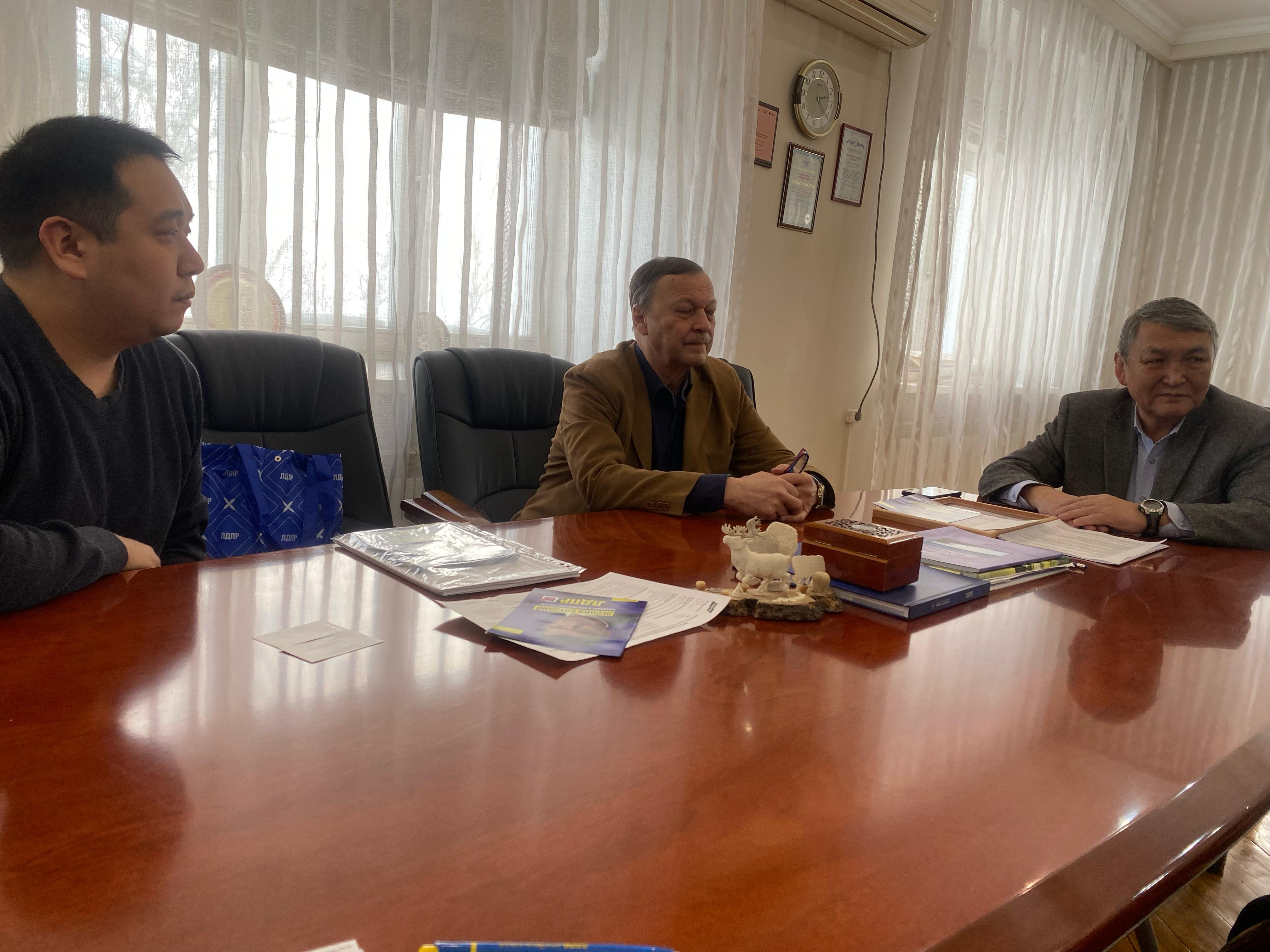 На встрече обсудили вопросы популяризации Якутской науки в рамках развития законопроектов об охране вечной мерзлоты в Республике Саха (Якутия) и рассказали о текущей деятельности Председателя ЛДПР Леонида Слуцкого, перспективы развития науки в стране и о поддержке научных сообществ.