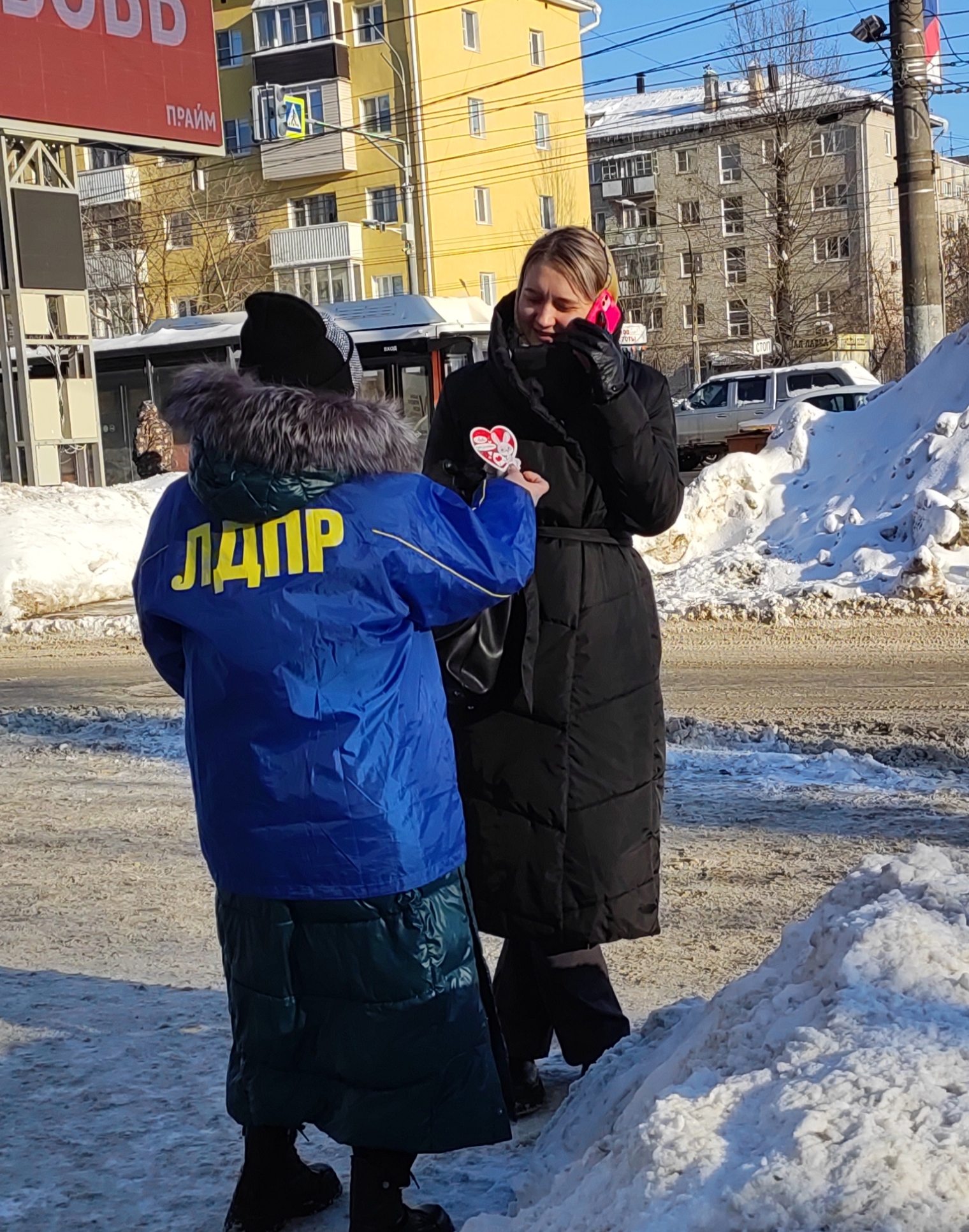 Наши партийцы рассказали жителям о законопроектах, направленных на поддержку демографии, которые вносит фракция ЛДПР в Госдуму и вручили им символ праздника - валентинки.
