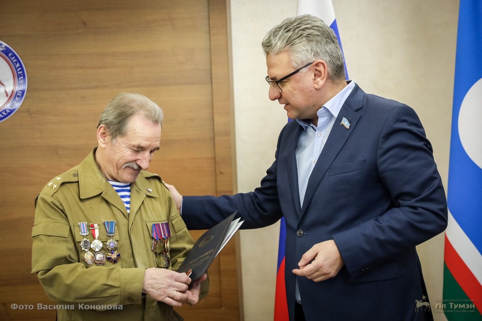 В стенах республиканского парламента почтили ветеранов Афганской войны, в котором принял участие член постоянного комитета по делам военнослужащих, ветеранов боевых действий, вопросам патриотического воспитания и общественных организаций, лидер реготделения ЛДПР Гаврил Парахин. Он вручил воинам-афганцам почетную грамоту от имени Госсобрания (Ил Тумэн):