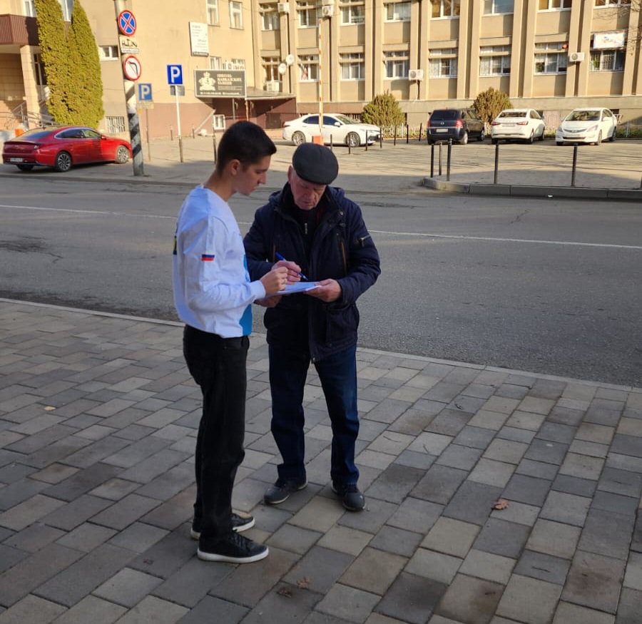 Руководитель молодежной организации Карачаево-Черкесского регионального отделения ЛДПР Виталий Караулов вместе с активистами партии проводит Всероссийский опрос граждан на улицах Черкесска