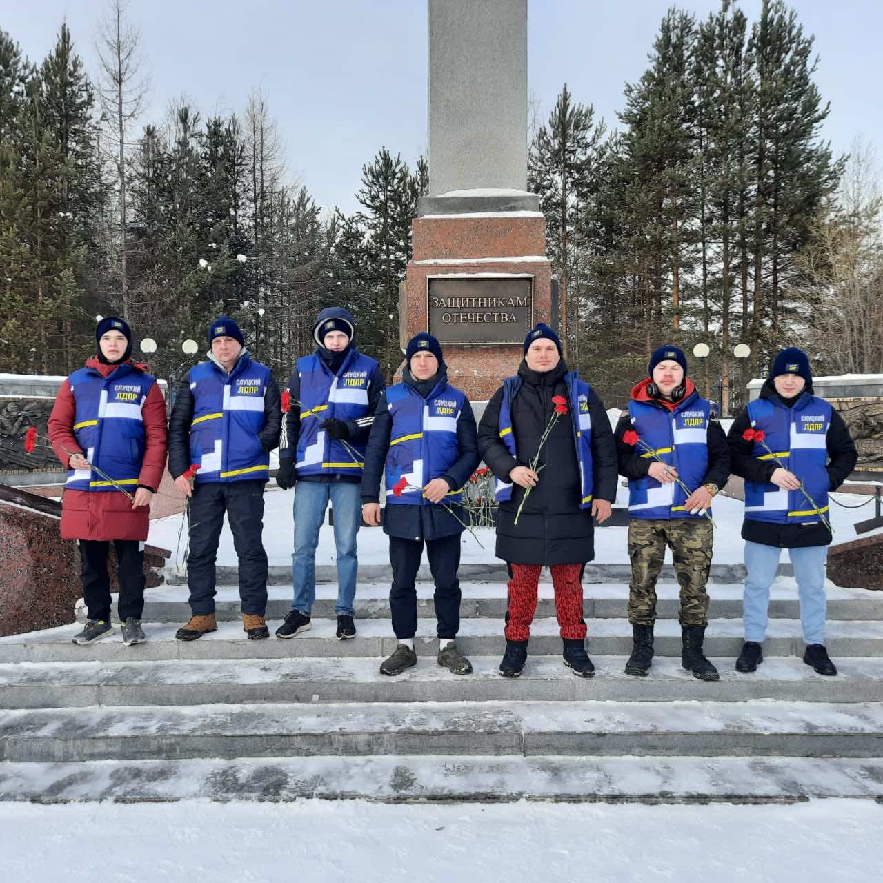 В Нягани 23 февраля в День защитника Отечества партийцы возложили цветы