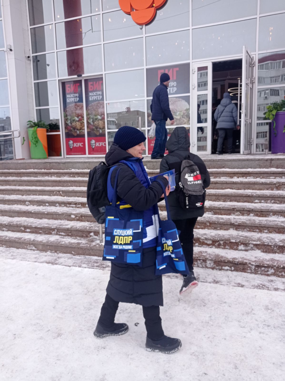 Представители ЛДПР спрашивают о проблемах, собирают обращения в адрес Леонида Слуцкого. Жители говорят о ЖКХ, качестве образования, доступности медицинских услуг. Представители ЛДПР заполняют анкеты – опросники, приглашают на прием граждан в общественную приемную партии, напоминают о сроках выборов Президента РФ.