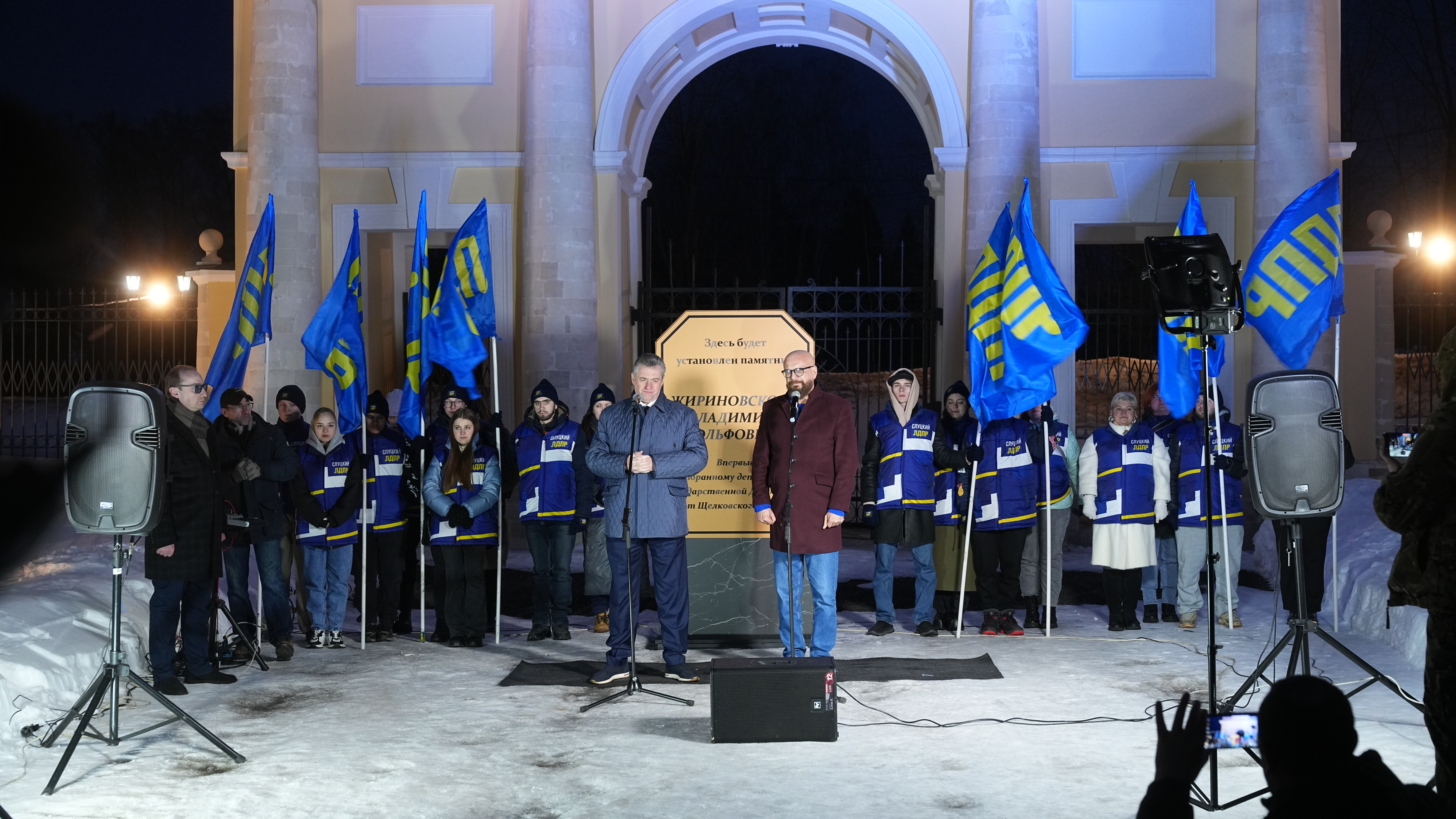 5 марта, в Усадьбе Гребнево в Щёлково Московской области Председатель ЛДПР Леонид Слуцкий принял участие в церемонии открытия памятного знака, на месте, где будет установлен памятник основателю ЛДПР Владимиру Жириновскому