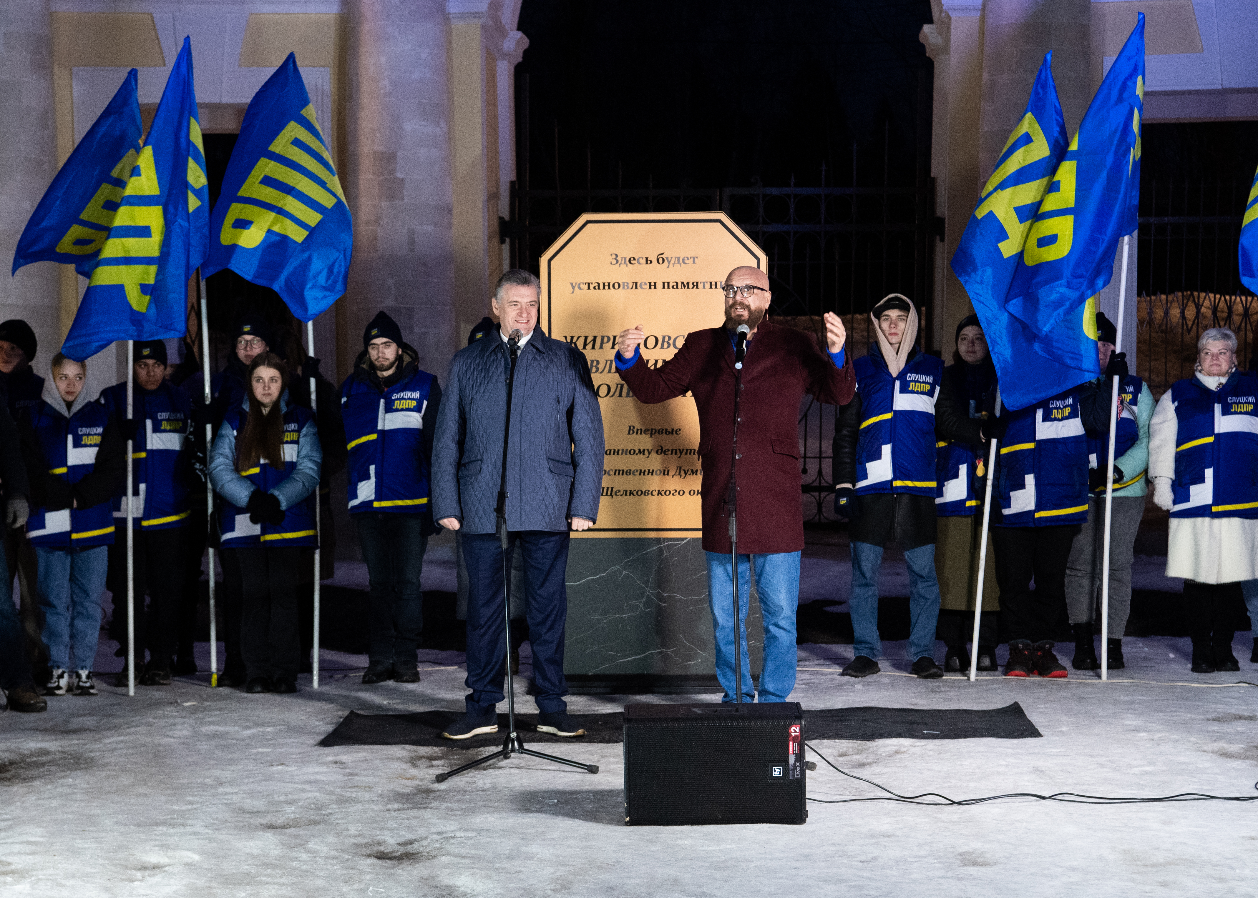 Место для памятника выбрано неслучайно: в 1993 году Владимир Жириновский победил на выборах в Государственную Думу именно от Щелковского района. Леонид Слуцкий подчеркнул, что Владимир Жириновский вписал своё имя в историю России «золотыми буквами», а партия сегодня продолжает дело её Основателя и работает по его заветам.