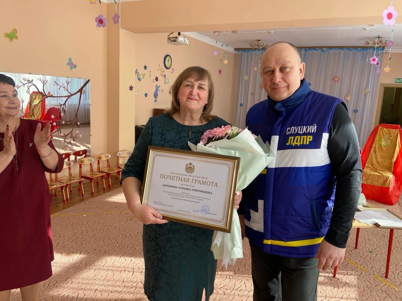 Сегодня, 6 марта, депутат Новгородской областной думы от ЛДПР - Алексей Чурсинов вручил почëтные грамоты Новгородской областной думы воспитателям МАДОУ "Центр развития ребенка - детский сад #8 "Золушка" — Антоновой Татьяне Григорьевне и Викторовой Нине Владимировне.
