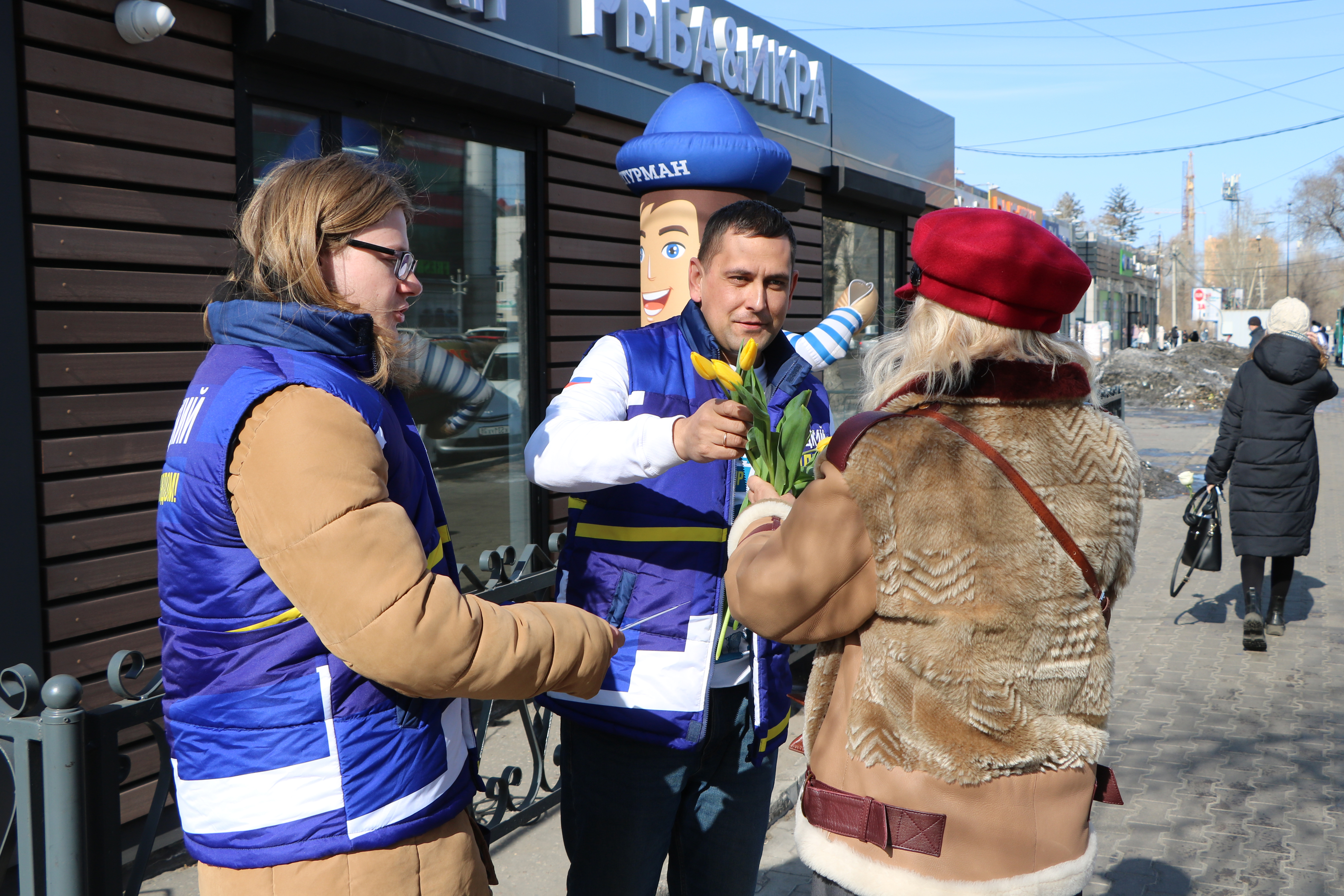 Прекрасной традицией дарить цветы девушкам на улицах города активисты ЛДПР подчеркнули важность уважения и поддержки женщин, их роли в семье, обществе и на работе. Этот женский день напоминает нам о красоте, нежности и силе, присущей каждой представительнице прекрасного пола. Каждый цветок, врученный девушкам, стал символом признания и благодарности за их тепло, заботу и вклад в наше общее благополучие.