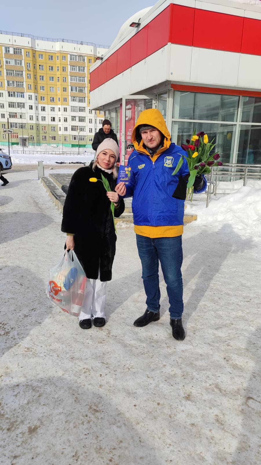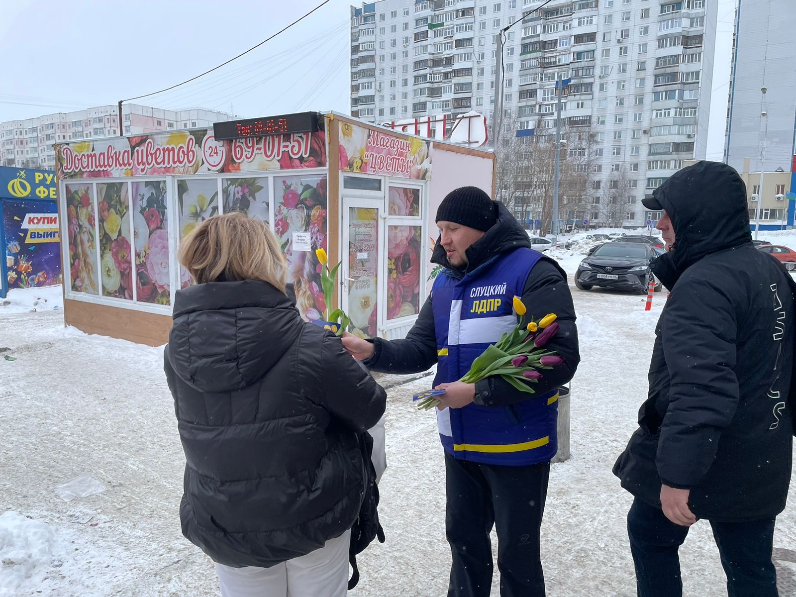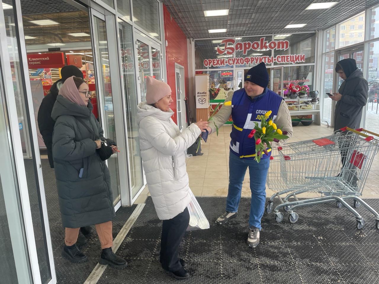 В Нижневартовске активисты партии дарят женщинам цветы, улыбки, добрые пожелания и открытки ЛДПР