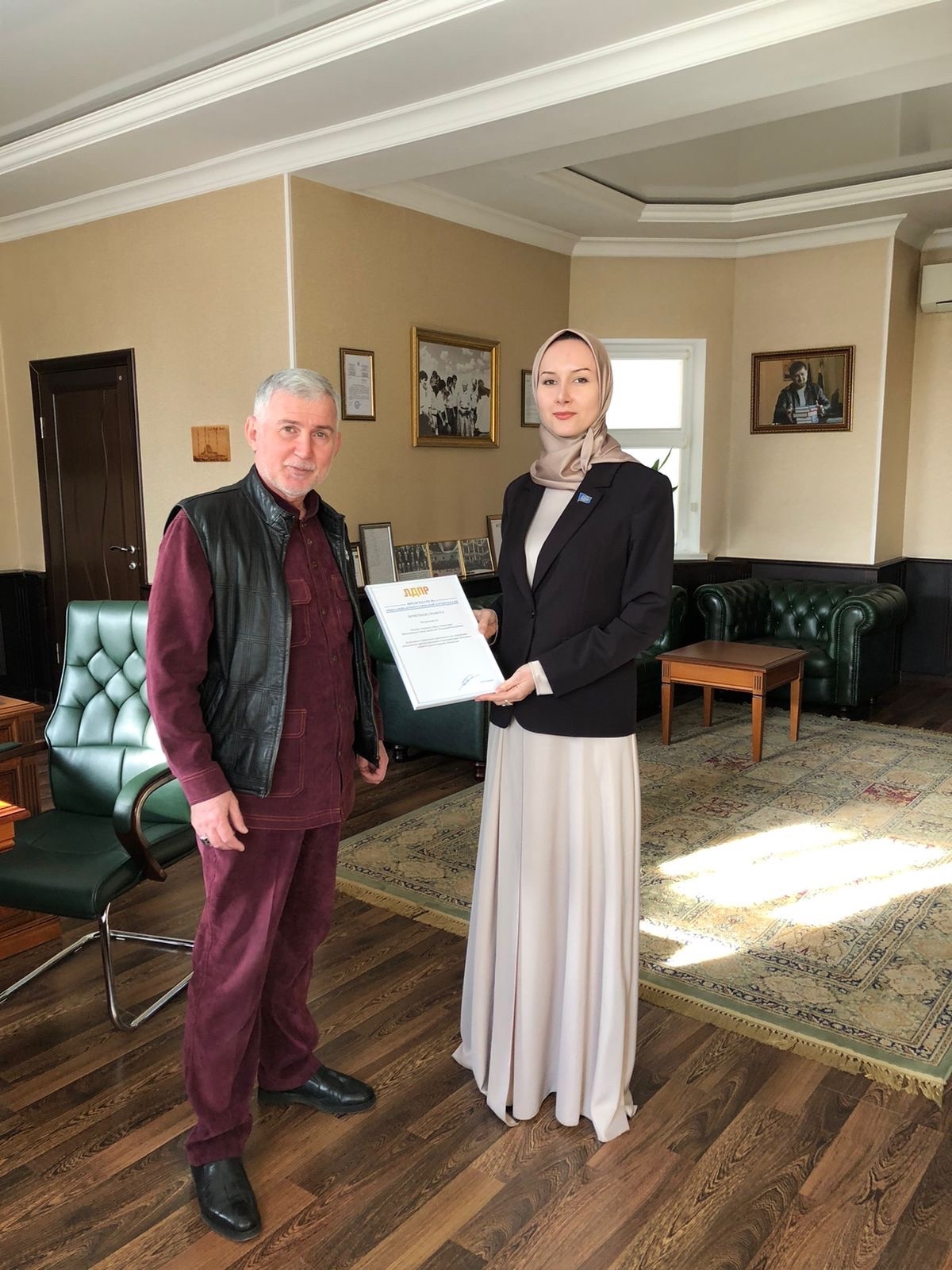 В связи с празднованием 3 марта Всемирного дня писателя, выполняя поручение лидера ЛДПР Леонида Слуцкого, депутат местного самоуправления от ЛДПР Мадина Ясаева вручила Почетную грамоту партии председателю Союза писателей ЧР Аламахаду Ельсаеву и поздравила литераторов республики