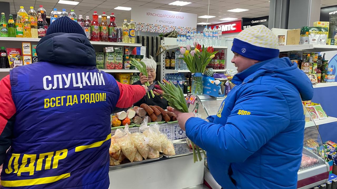 В Международный женский день доверенные лица Председателя ЛДПР, депутаты и активисты регионального отделения партии на Ямале дарили дамам цветы и открытки, сопровождая комплиментами и тёплыми пожеланиями