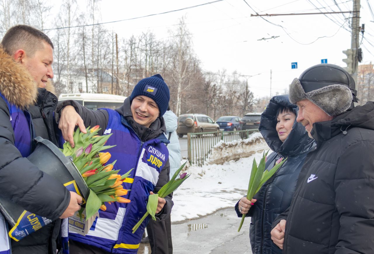 Депутаты Чувашского отделения ЛДПР вместе с активистами партии подарили жительницам города тюльпаны и поздравительные открытки от ЛДПР
