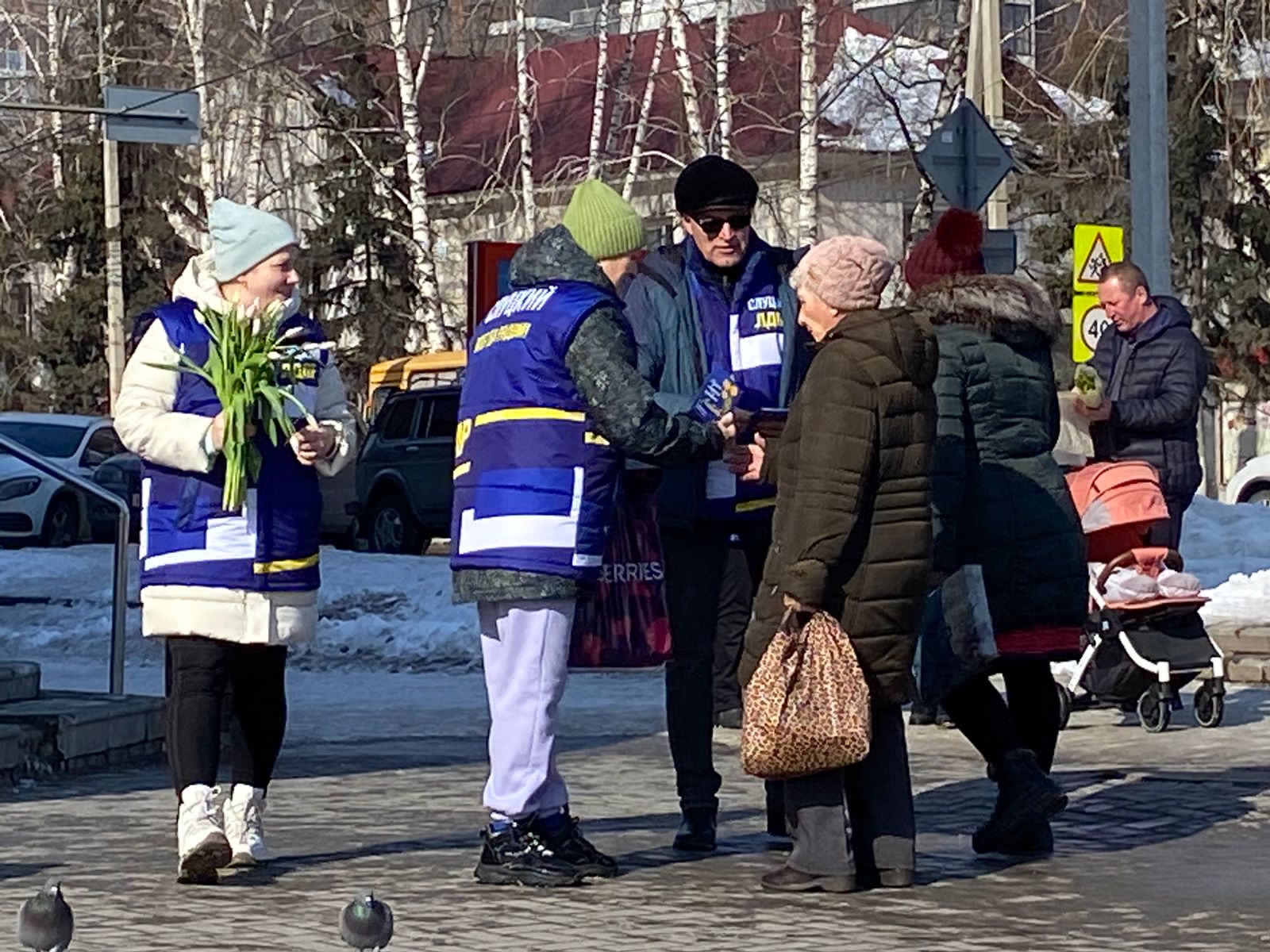 Активисты ЛДПР поздравили всех женщин Республики Алтай с Международным женским днём, подарив им тюльпаны, а также пожелали удачи и успехов в будущем