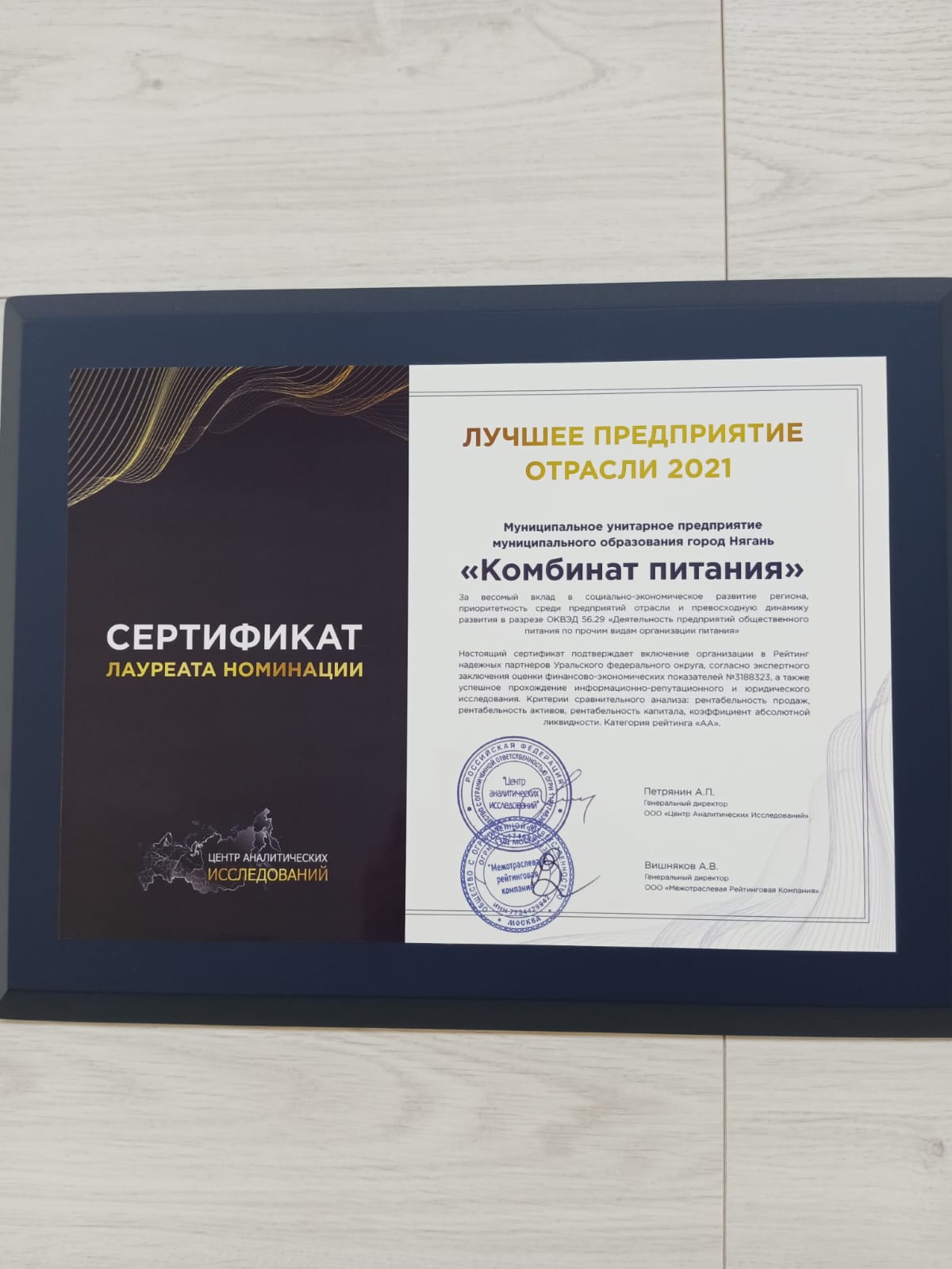 «На сегодняшний момент у этого предприятия два кафе, одно из которых расположено в новом здании железнодорожного вокзала с самого момента открытия ж/д. На предприятии организован систематический контроль качества выпускаемой продукции. Разработана и выполняется программа производственного контроля. Занимаются важным делом в нашем городе», - рассказал депутат Александр Мещангин, поздравив руководство с заслуженной наградой, как одно из лучших предприятий общепита в 2021 году и пожелал и в дальнейшем не ронять планку, а и дальше работать четко по ГОСТу.