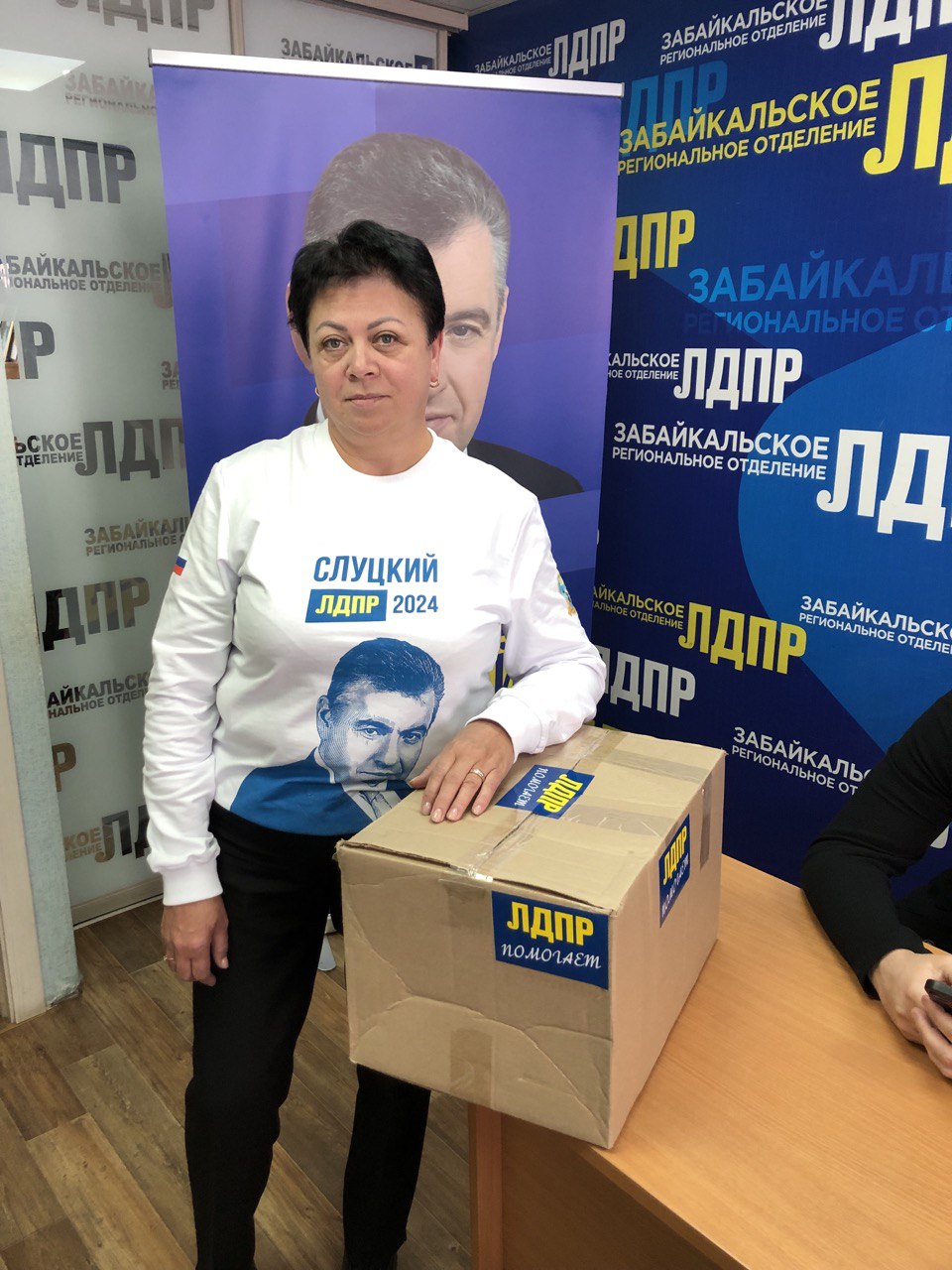 Жительница Читы Валентина Волкова передала в штаб ЛДПР посылку для бойцов СВО. Сердечный привет из дома в виде посылки на передовую через добровольцев отправила депутат Законодательного Собрания Забайкальского края Светлана Илюхина