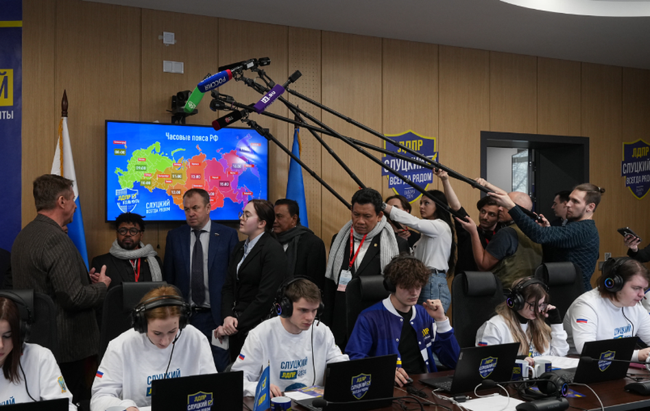 Сегодня, 16 марта, в Москве во второй день голосования в избирательный штаб кандидата на пост Президента России, Председателя ЛДПР Леонида Слуцкого посетили международные наблюдатели парламентских делегаций из Индонезии и Азербайджана. Представители международных делегаций ознакомились с работой инцидент-центра «ЛДПР.Кольчуга», это система защиты результатов выборов, которая в круглосуточном режиме осуществляет наблюдение и контроль за ходом голосования, а также узнали о системе работы наблюдателей на выборах Президента РФ
