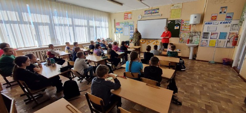 Дети с увлечением слушали и задавали много вопросов. Боец поблагодарил ребят за письма и рисунки, которые они отправляют в знак поддержки и благодарности.