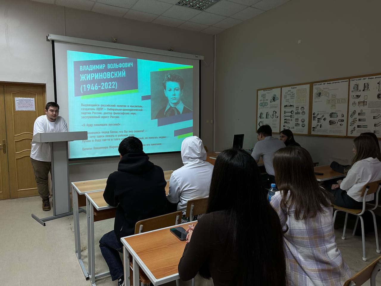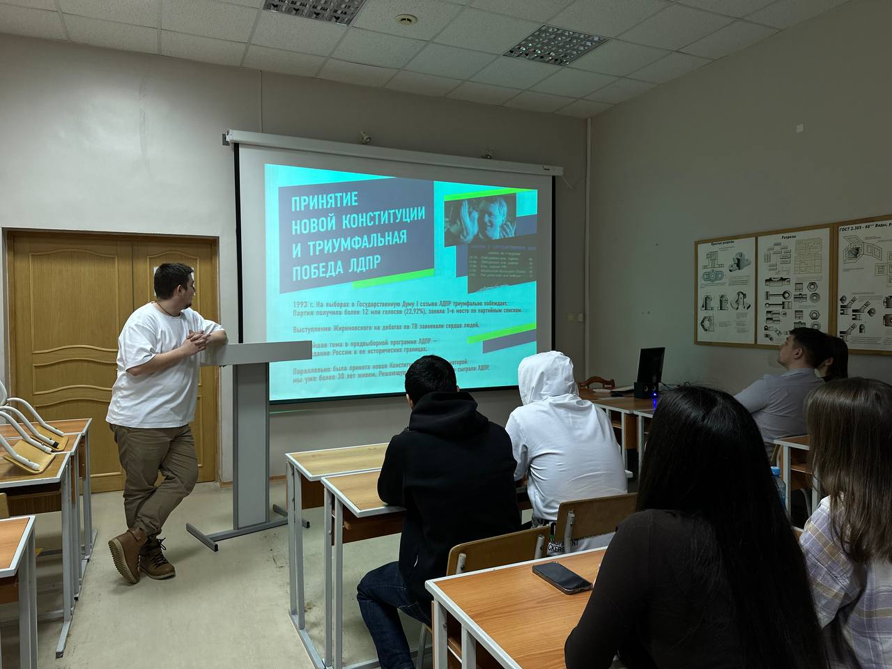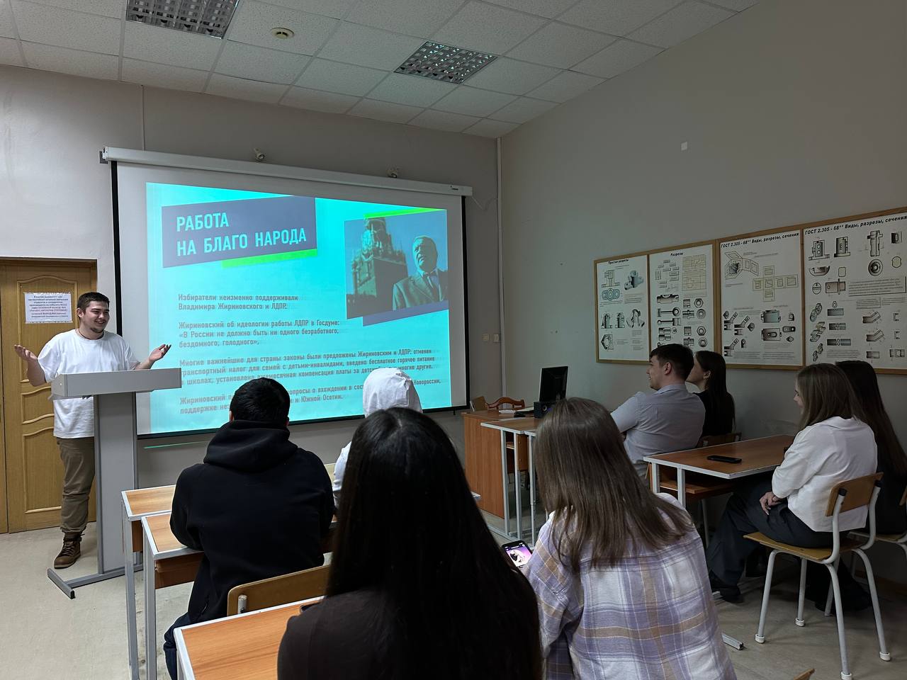Иван Огнев, заместитель координатора Ханты-Мансийского регионального отделения партии по работе с молодежью представил студентам презентацию «Владимир Вольфович Жириновский. Пророк в своем Отечестве».