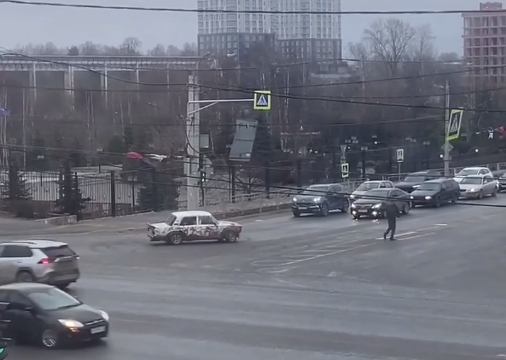 Картина удивительная: перекресток в центре города Иваново, водитель жигулей не обращает внимания на пешеходов, а про существование правил дорожного движения он, видимо, забыл