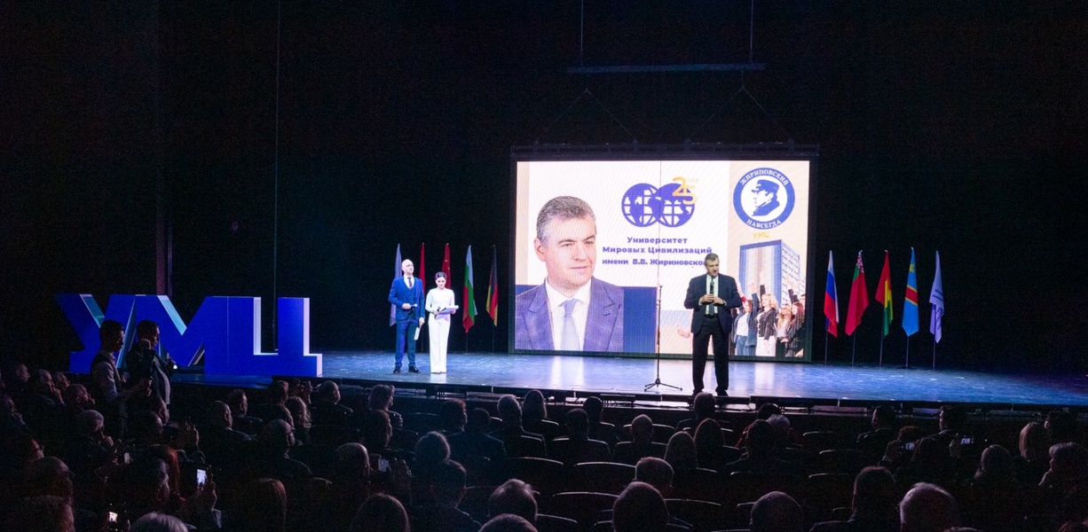 Сегодня, 5 апреля, в Москве состоялось торжественное мероприятие, посвящённое 25-летию Университета мировых цивилизаций имени В.В. Жириновского. Зал Московского театра мюзикла собрал почти полторы тысячи гостей. Это студенты, выпускники, преподаватели, депутаты ЛДПР и сенаторы Российской Федерации. В праздничном концерте приняли участие творческие коллективы, со сцены звучали поздравления