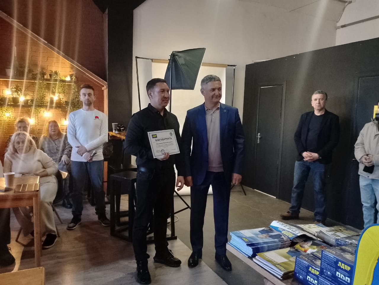 Руководитель фракции ЛДПР в Заксобрании Камчатского края Валерий Калашников рассказал присутствующим о собственном опыте общения с Владимиром Жириновским и влиянии великого политика на выбор жизненной стези камчатского парламентария. По окончании выступления Валерий Калашников наградил благодарственными письмами самых активных членов ЛДПР, принявших участие в мартовской выборной президентской кампании.