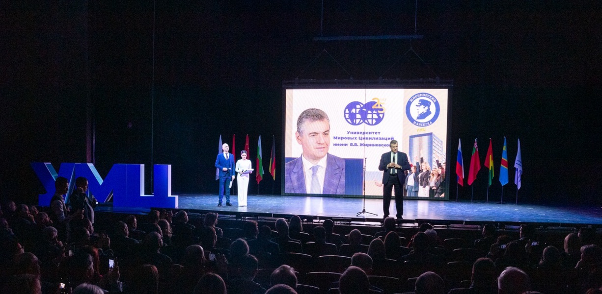 5 апреля, в Москве состоялось торжественное мероприятие, посвящённое 25-летию Университета мировых цивилизаций имени В.В. Жириновского. Зал Московского театра мюзикла собрал почти полторы тысячи гостей. Это студенты, выпускники, преподаватели, депутаты ЛДПР и сенаторы Российской Федерации. В праздничном концерте приняли участие творческие коллективы, со сцены звучали поздравления