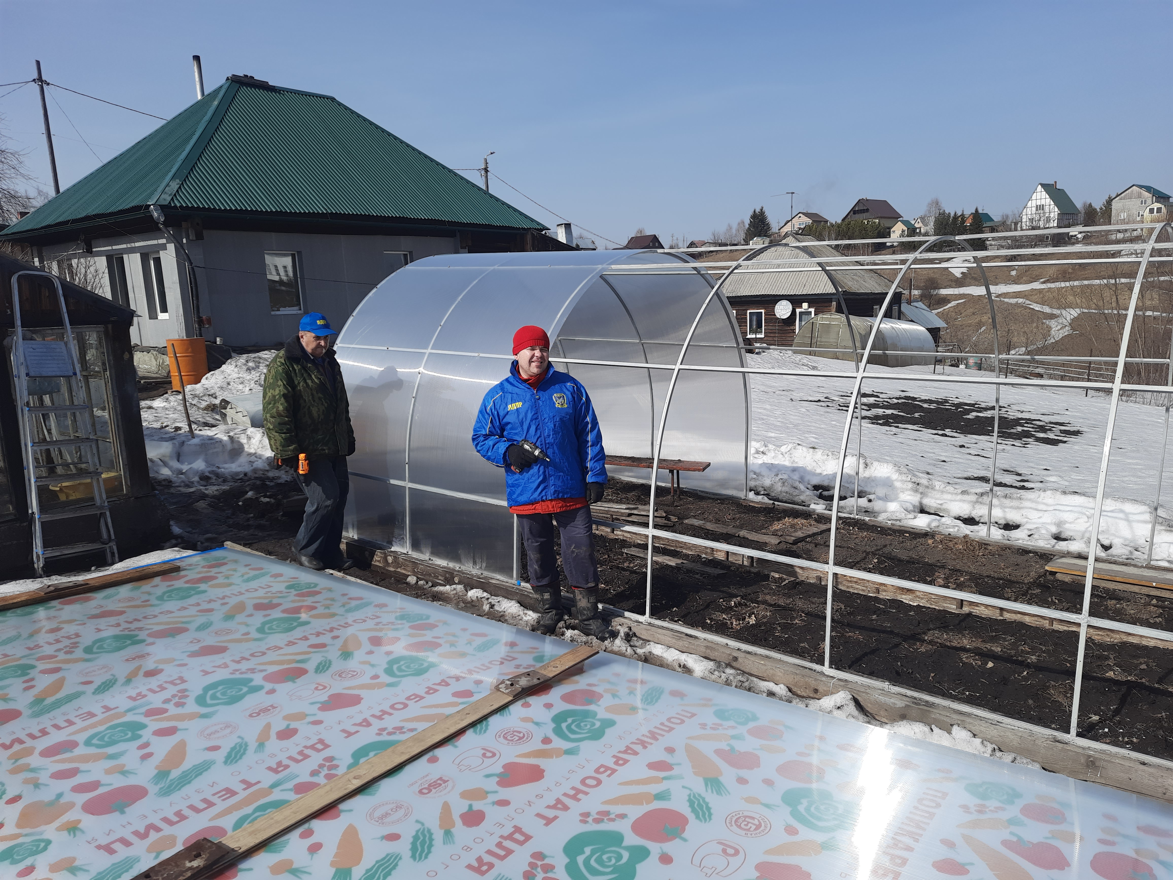 Координатор Кировского отделения от ЛДПР Андрей Бочкарёв совместно с активистами помог восстановить теплицу, которая не выдержала зимних ураганов ветерану труда