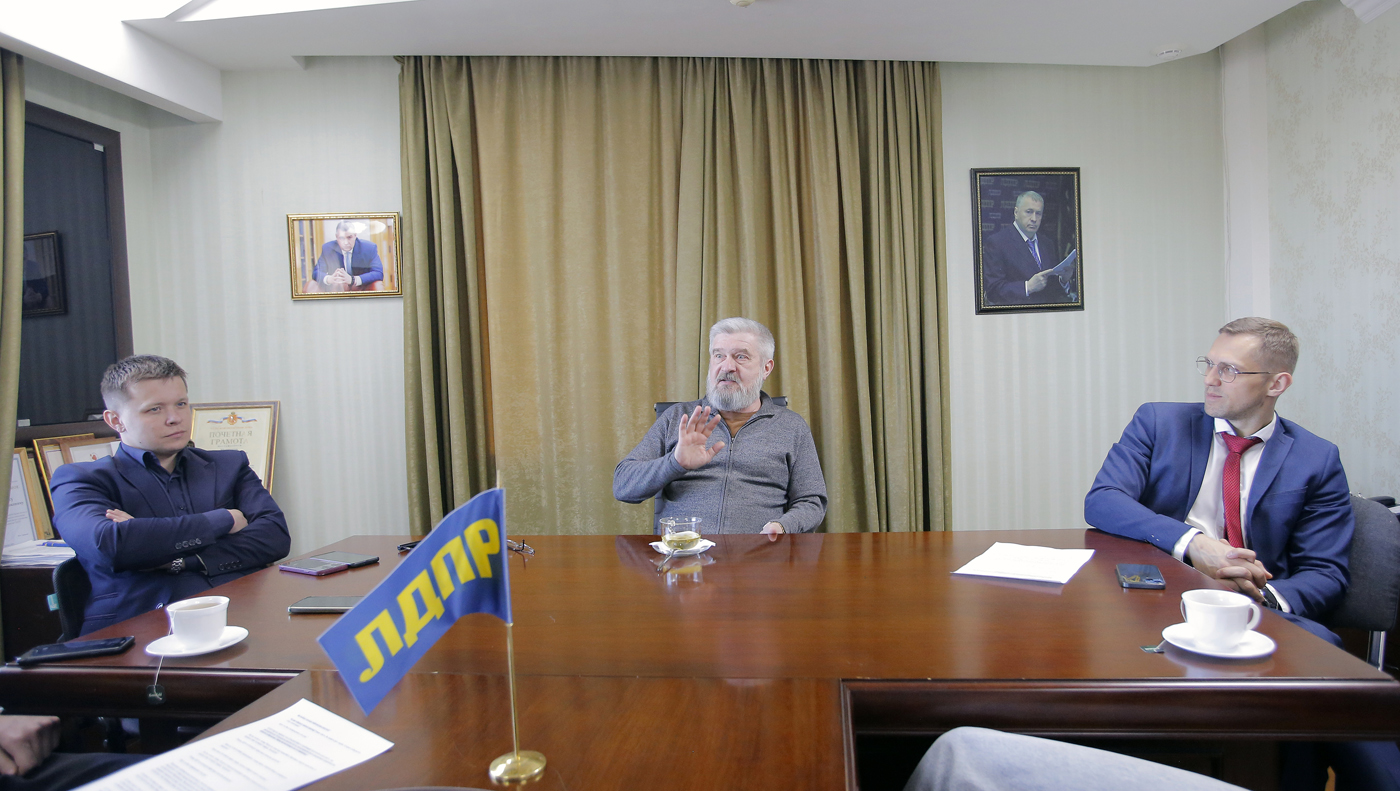 Руководитель фракции ЛДПР Тульской облдумы Александр Балберов вместе со своим коллегой по региональному парламенту Ильей Киндеевым и депутатом гордумы Александром Маринковым ответили на вопросы студентов — политологов, которые проходят практику в региональном отделении ЛДПР