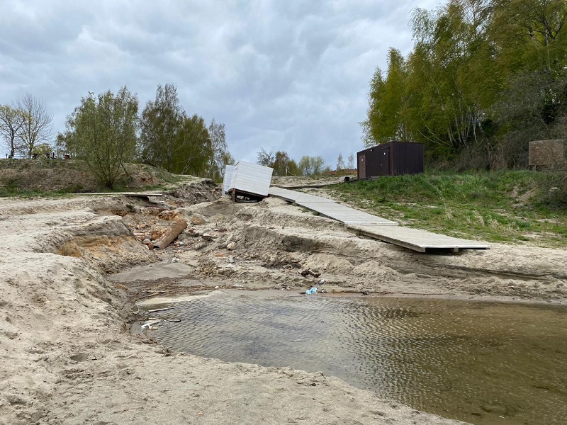 К помощнику депутата ЛДПР Законодательного собрания Калининградской области Михаилу Черноусько обратились жители пос. Янтарный. По их словам, пляж и подход к озеру Синявинское, излюбленному месту отдыха горожан и туристов, полностью разрушен.