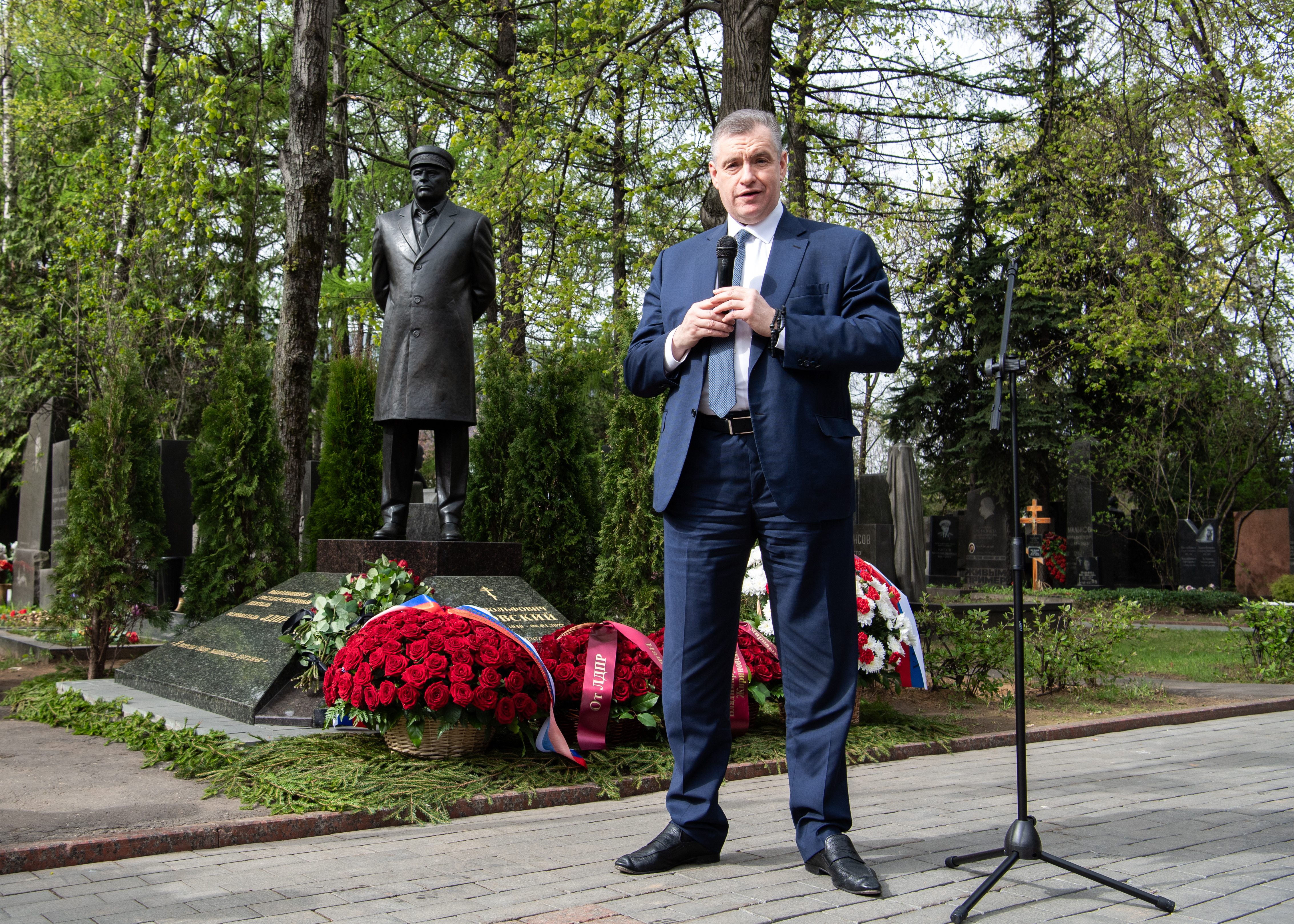 25 апреля Леонид Слуцкий посетил могилу Основателя ЛДПР Владимира Жириновского на Новодевичьем кладбище в Москве