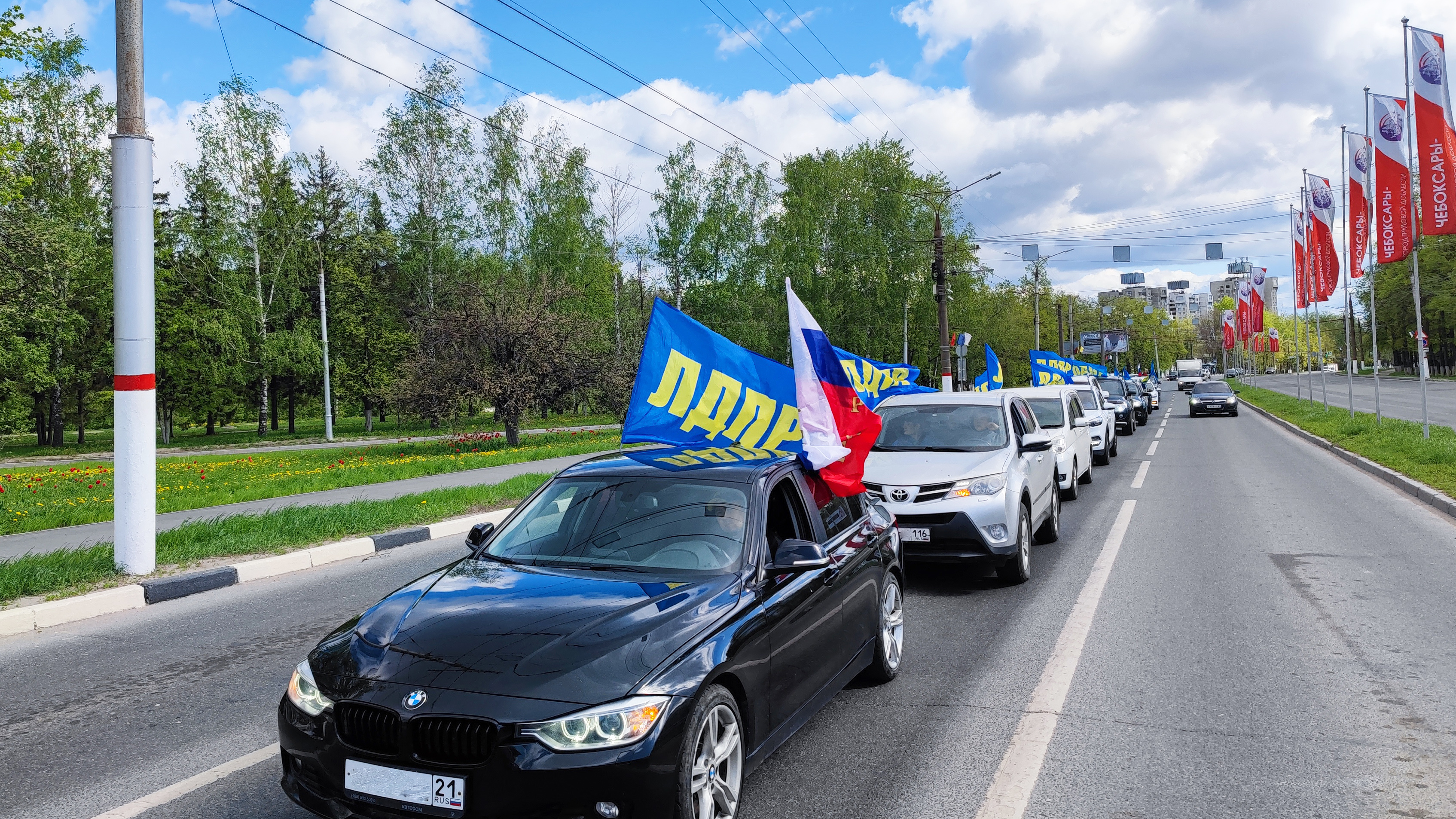 Более 10-ти автомобилей украшенных российскими и партийными флагами проехалась по улицам Чебоксар