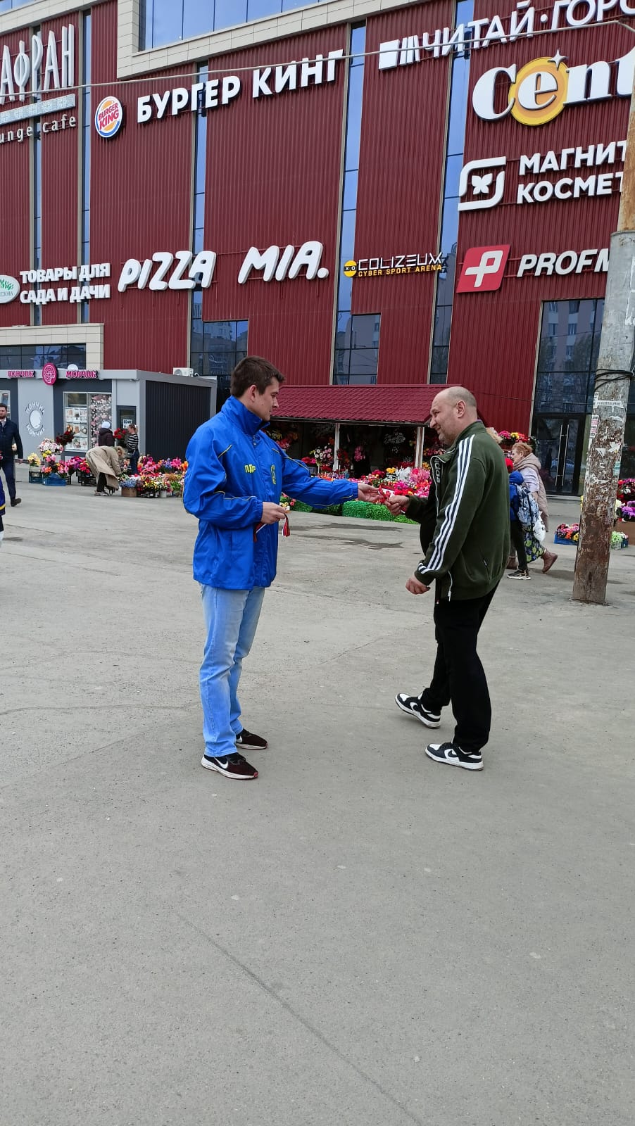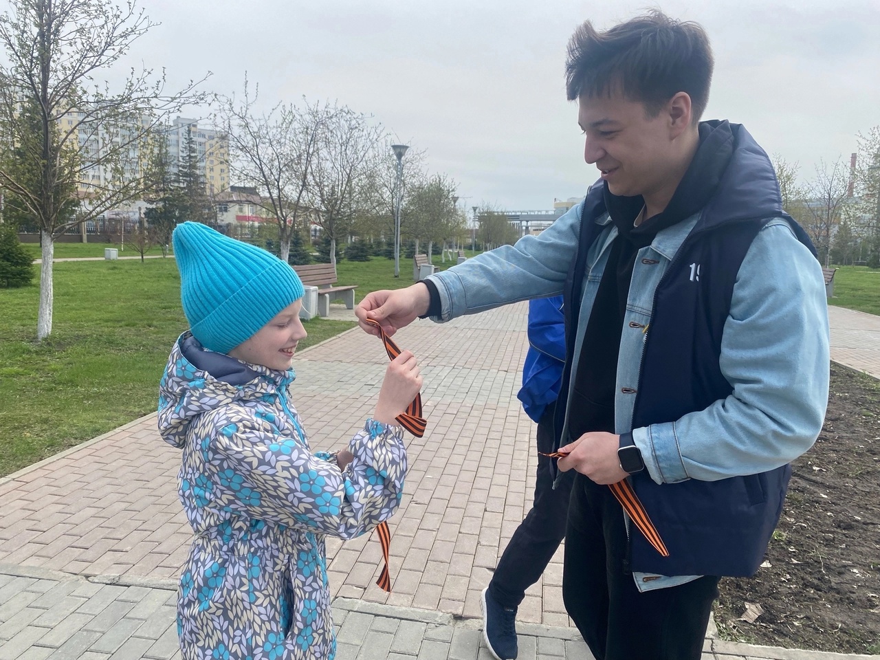 Партийцы раздали георгиевские ленточки накануне Дня Победы