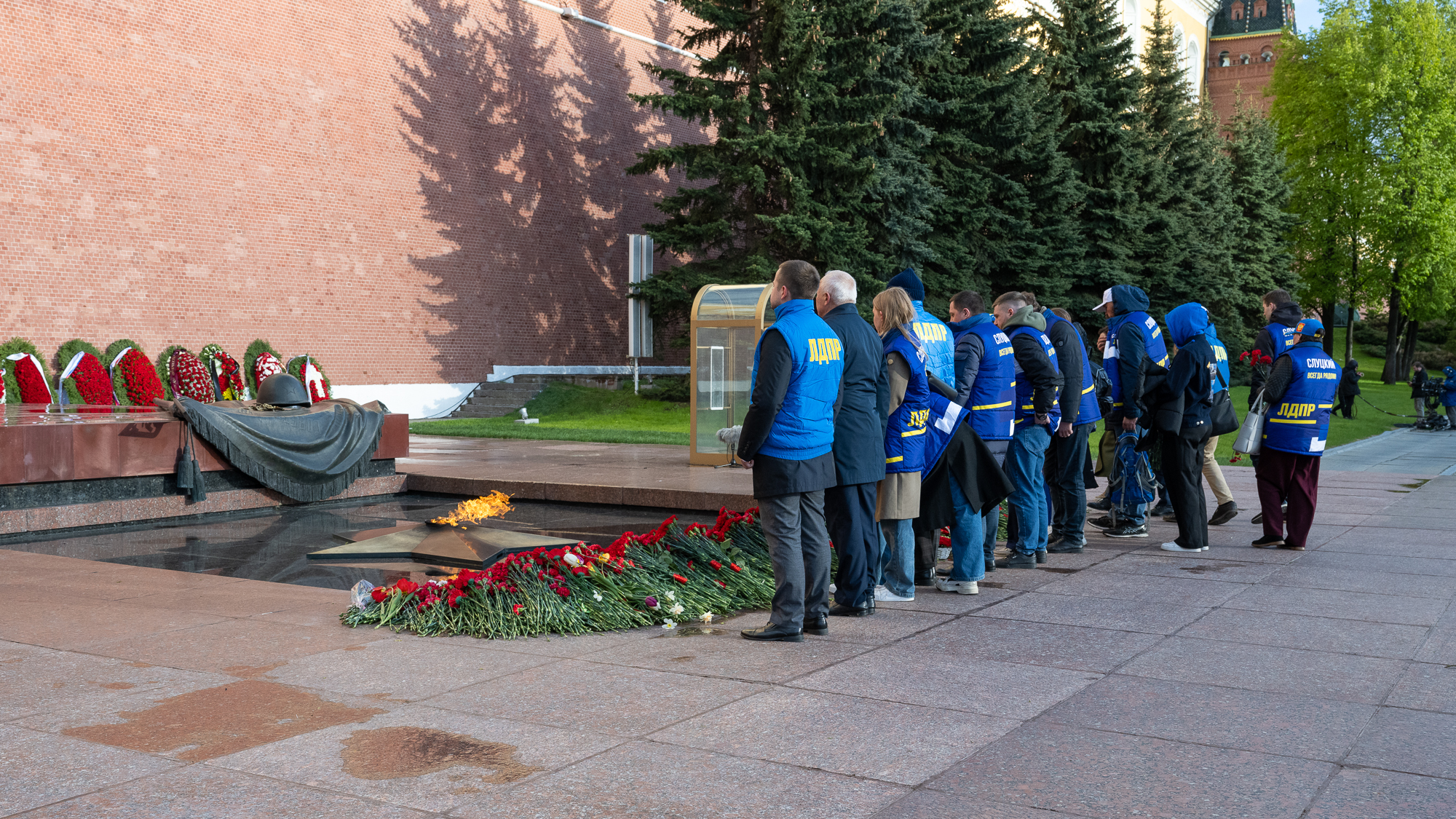 В канун 79-й годовщины Дня Победы Председатель ЛДПР Леонид Слуцкий почтил память советских воинов, возложив цветы к Могиле Неизвестного Солдата в Александровском саду
