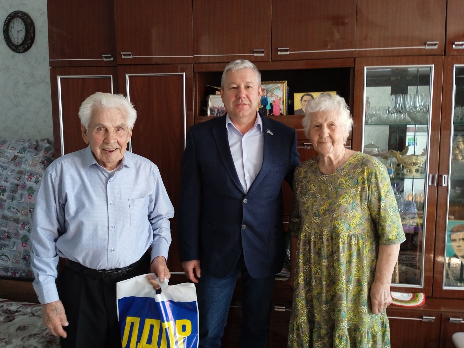Депутат Тюменской городской Думы фракции ЛДПР Дмитрий Ошурков поздравил ветерана Геннадия Соколова с Днём Победы